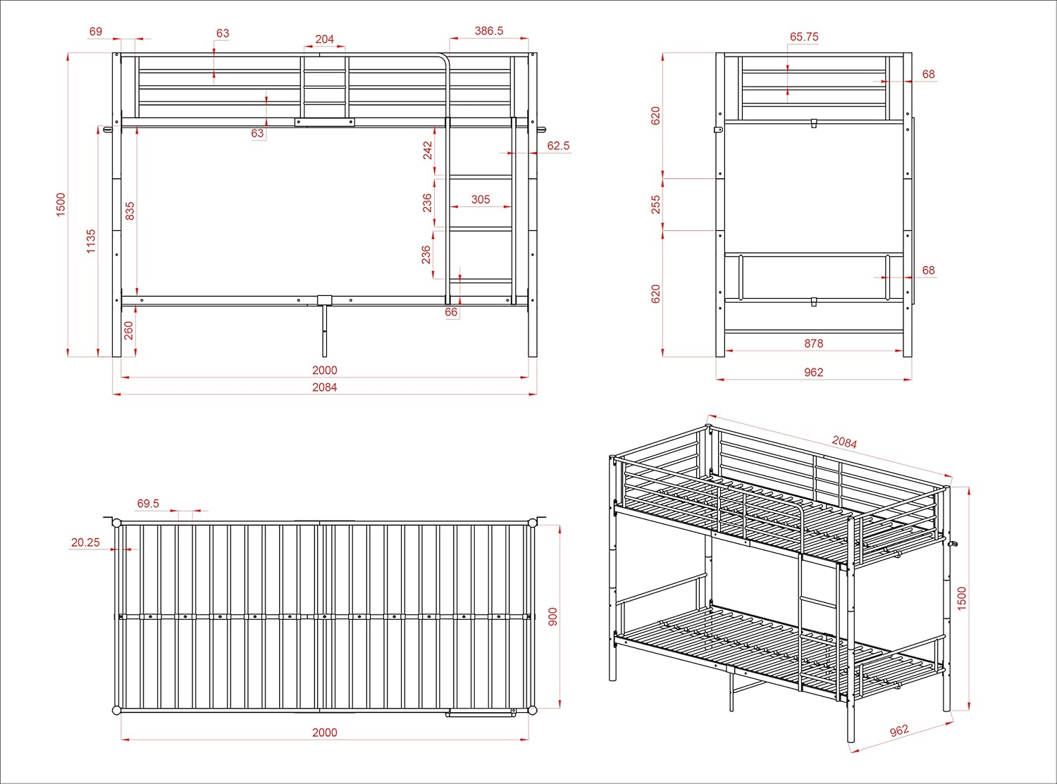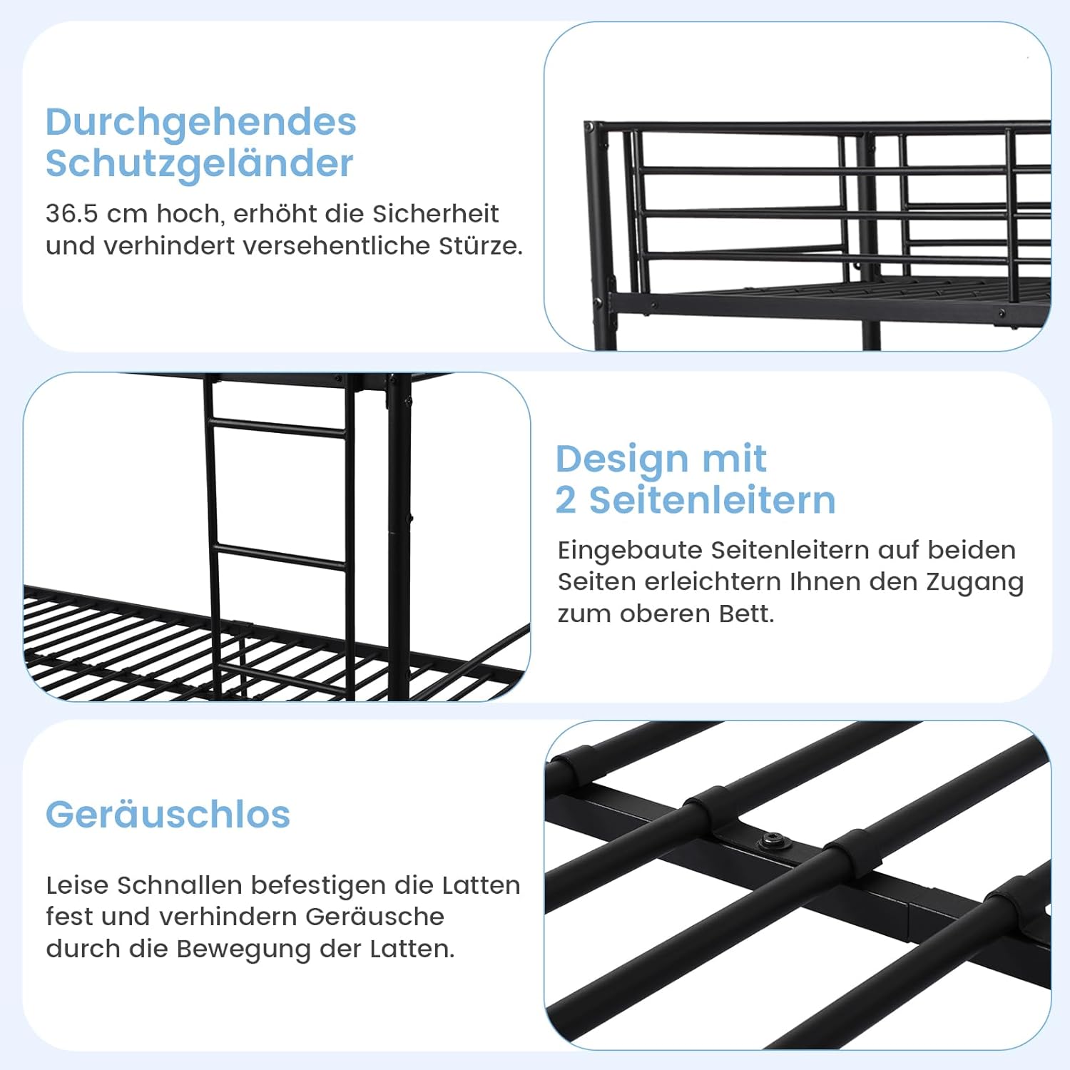Das Bettgestell besteht aus hochwertigem Metall, das sorgfältig verarbeitet wurde. Die robuste Konstruktion bietet eine sichere und stabile Basis für den täglichen Gebrauch und garantiert eine lange Lebensdauer – ideal für aktive Kinder.