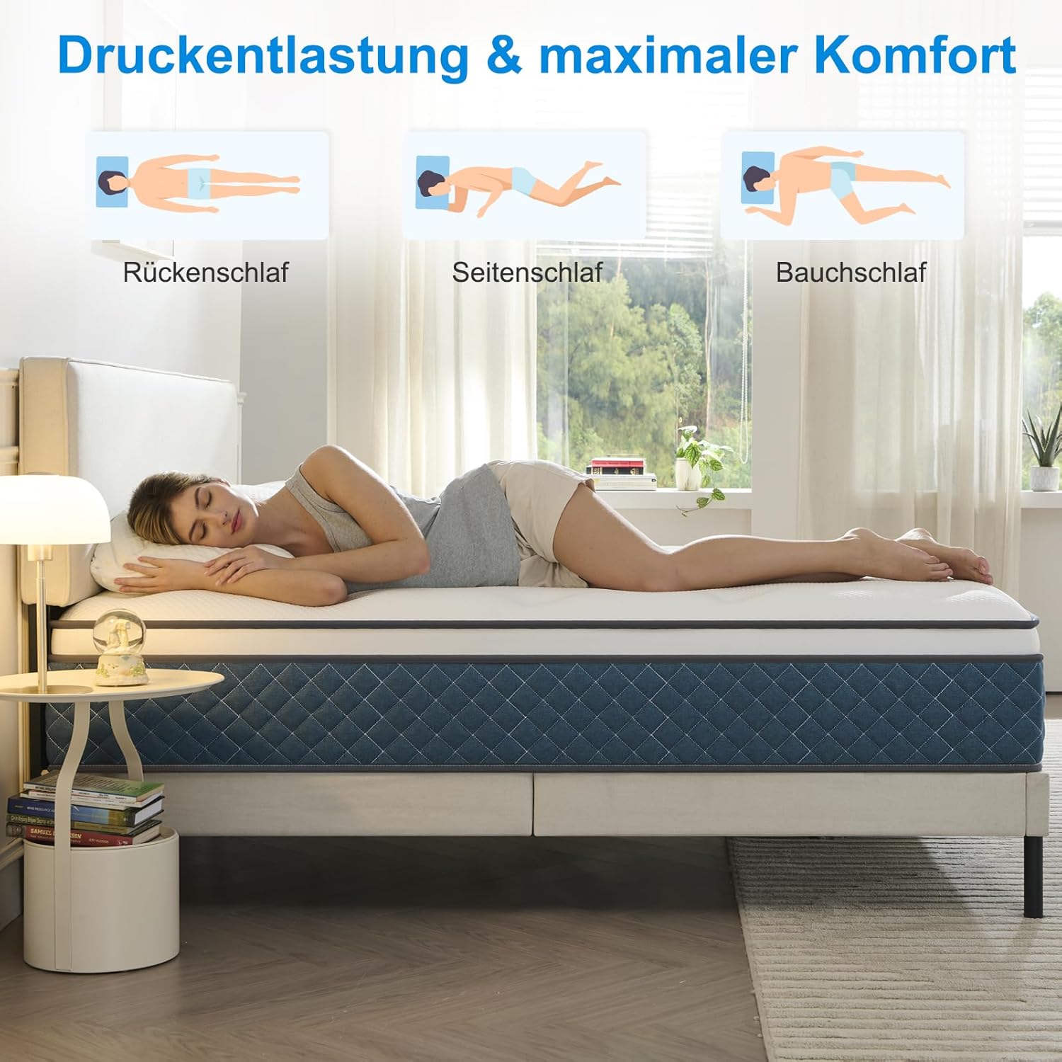 Diese Matratze verfügt über ein zoniertes Federsystem, das sich optimal an die Körperkonturen anpasst und gezielt Druck auf Taille und Rücken nimmt. Egal, ob Sie auf der Seite, dem Rücken oder Bauch schlafen, sie bietet stets hohen Komfort und ergonomische Unterstützung.
