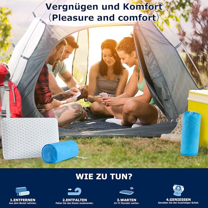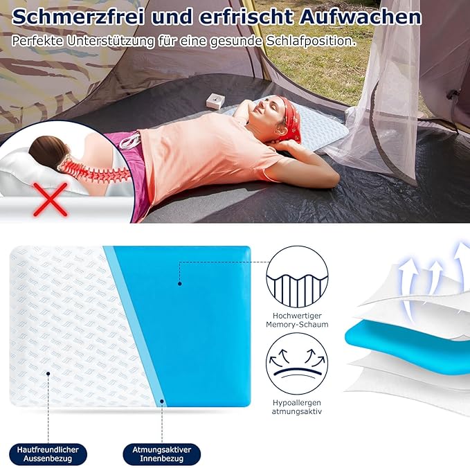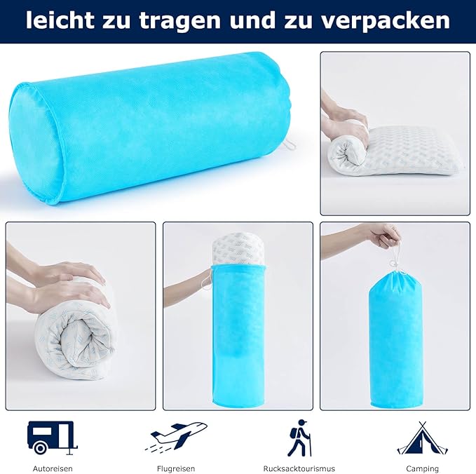 Ob für erholsamen Schlaf, beim Camping, Yoga, Meditation oder als Rückenstütze im Büro: Dieses ergonomische Kissen ist ultraleicht, flach und kommt mit einer praktischen Tragetasche – perfekt für unterwegs oder daheim.
