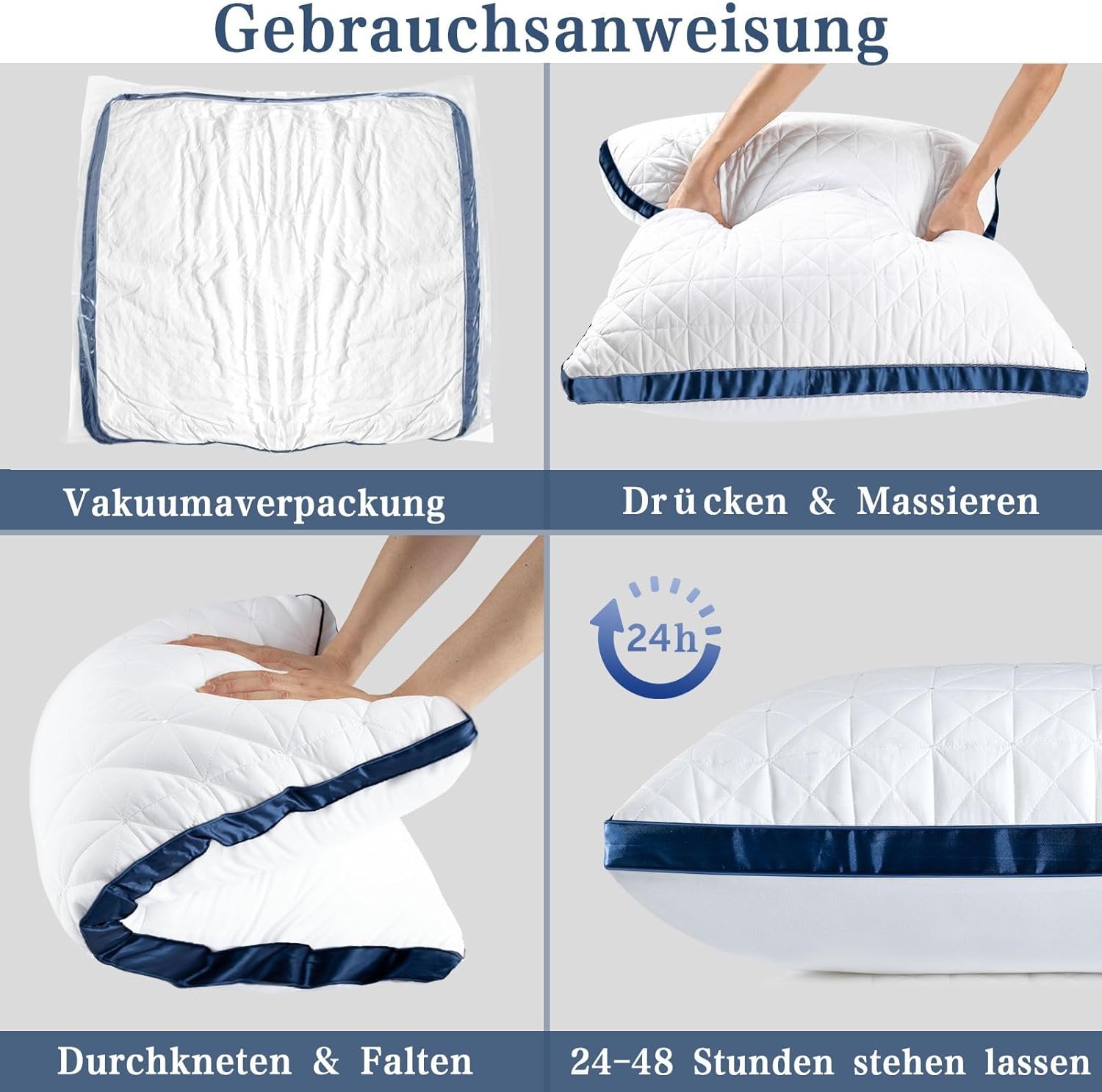 ✅ Maschinenwaschbar bei 30–40 °C, trocknergeeignet bei niedriger Temperatur. Vakuumkomprimiert für einfachen Transport. Bitte lassen Sie das Kissen 24 Stunden ruhen, damit es sich vollständig entfalten kann. Bei Fragen steht unser Kundenservice jederzeit zur Verfügung.