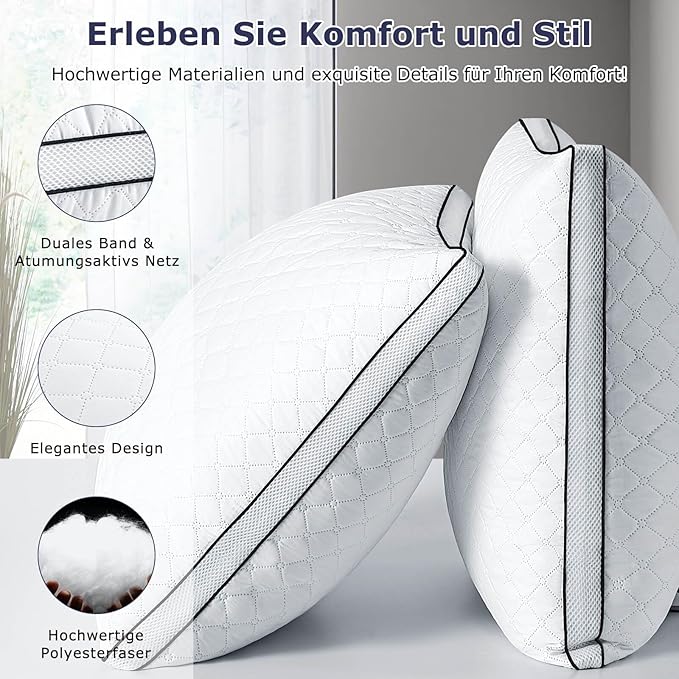 ✅ Perfekte Kombination aus Weichheit und Unterstützung: Dieses Kopfkissen mit hypoallergener Füllung umhüllt sanft Kopf und Nacken und sorgt für erholsamen Schlaf. Weich, voluminös und flauschig – ideal auch für Allergiker.