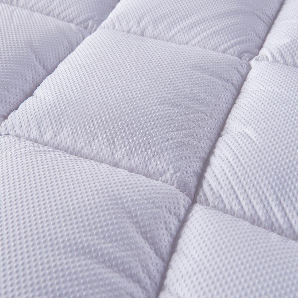Vier elastische Eckgummis halten die Auflage sicher an Ort und Stelle. Geeignet für Matratzen mit einer Höhe von bis zu 30 cm.