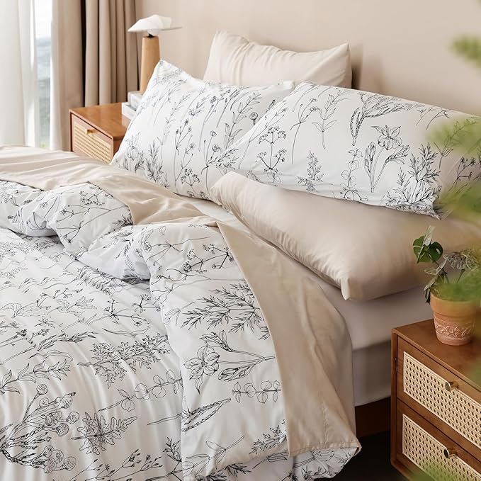 Zeitlos schöne Blumen- und Blättermuster bringen Frische und Eleganz in jedes Schlafzimmer. Ideal für Frühling, Sommer, Herbst und Winter – passend für Schlafzimmer, Gästezimmer oder Kinderzimmer.