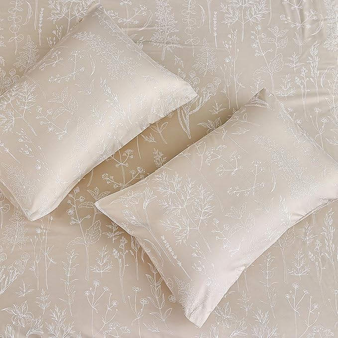 Elegantes botanisches Muster, inspiriert von floralen Landschaften und tropischen Blättern – für eine natürliche und beruhigende Atmosphäre im Schlafzimmer.