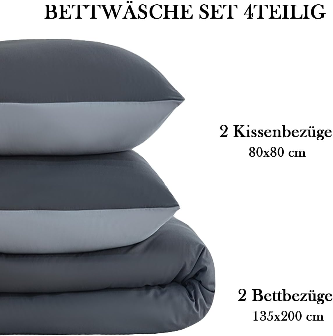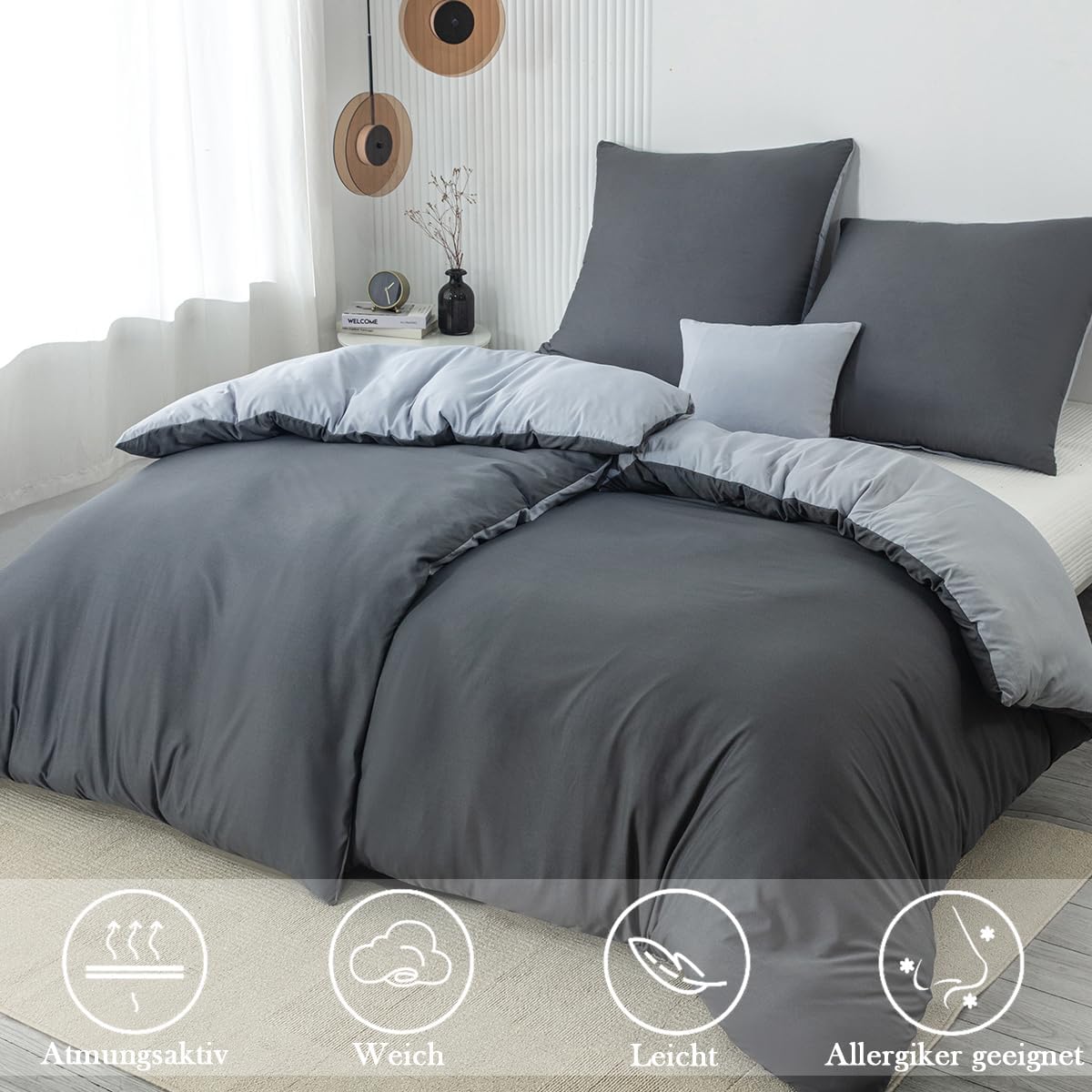 Das Wendebettwäsche-Set bietet zwei harmonisch aufeinander abgestimmte Farben, die Ihrem Schlafzimmer frischen Schwung verleihen und zu jedem Einrichtungsstil passen. Ideal für alle, die gerne mit ihrem Raumgestaltung experimentieren.