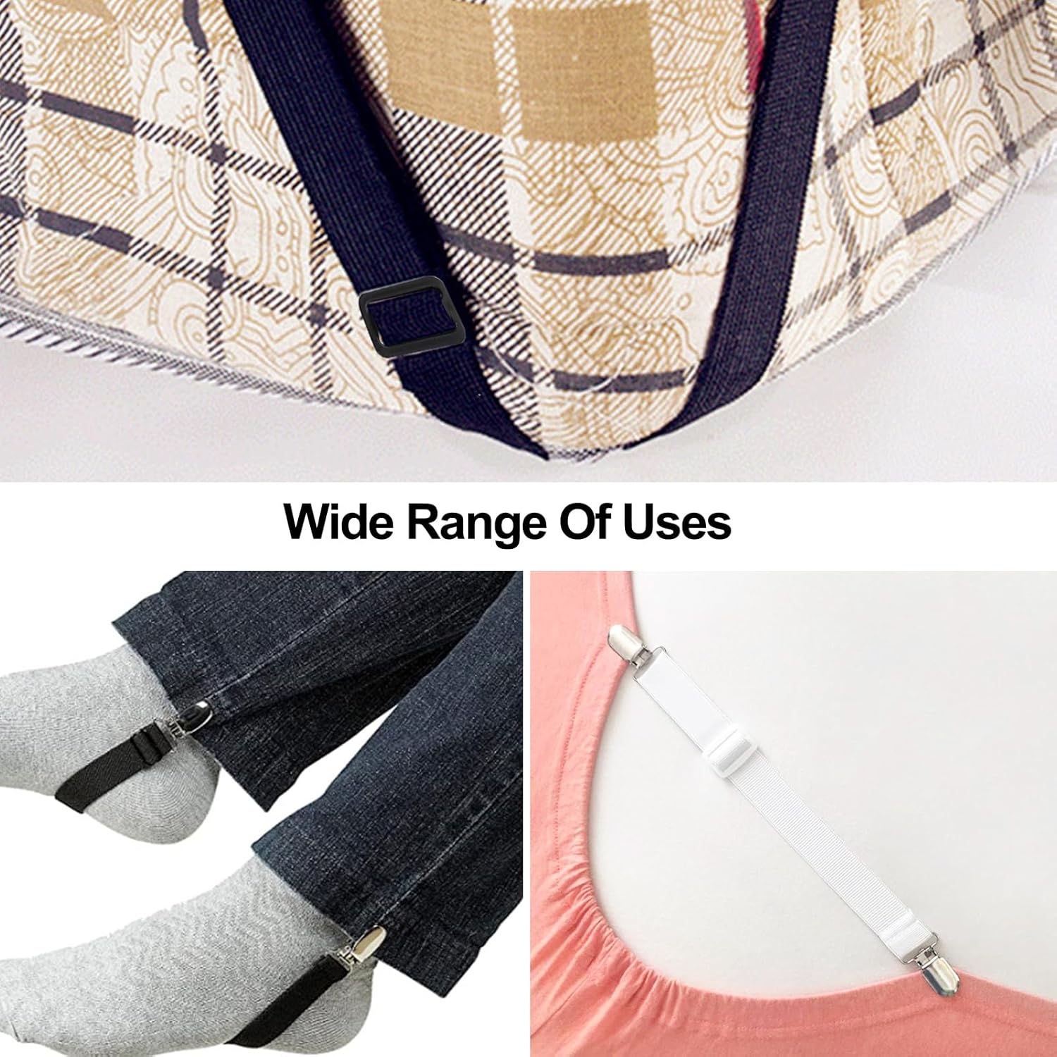 ✅ Praktisches 4er-Set weiße Bettlakenklammern – Mit robusten Metallklammern an beiden Enden und einer flexibel einstellbaren Länge von 30–100 cm sowie einer Breite von 2,5 cm, perfekt für den täglichen Gebrauch.