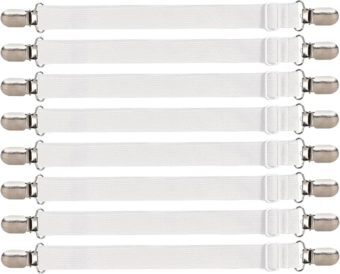 8er Set verstellbare Bettlakenspanner mit Metallclips
