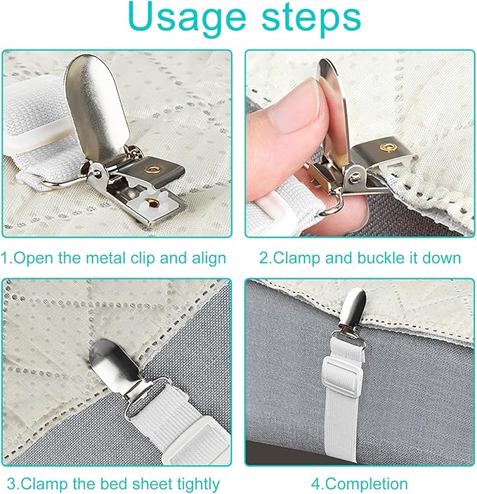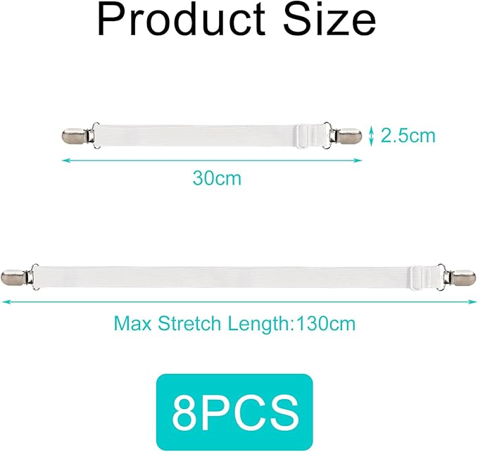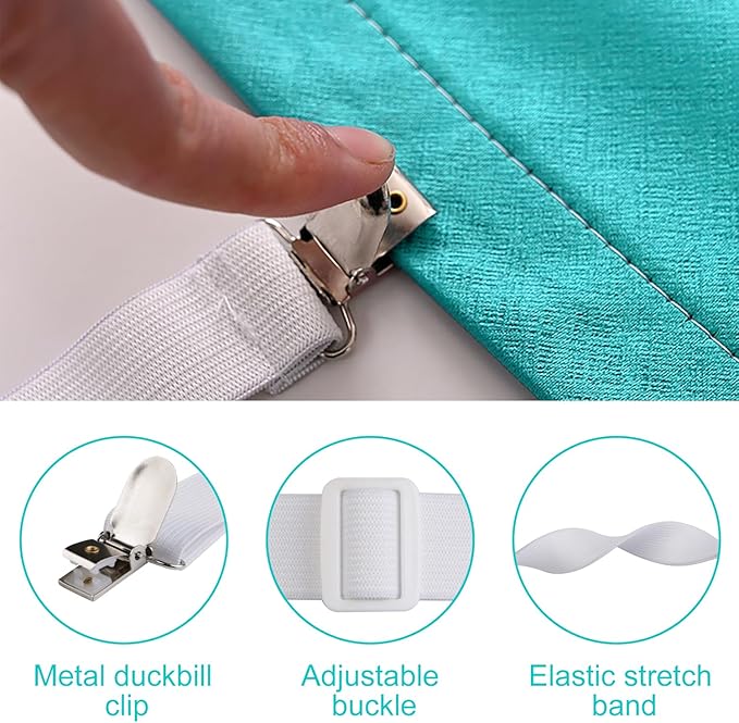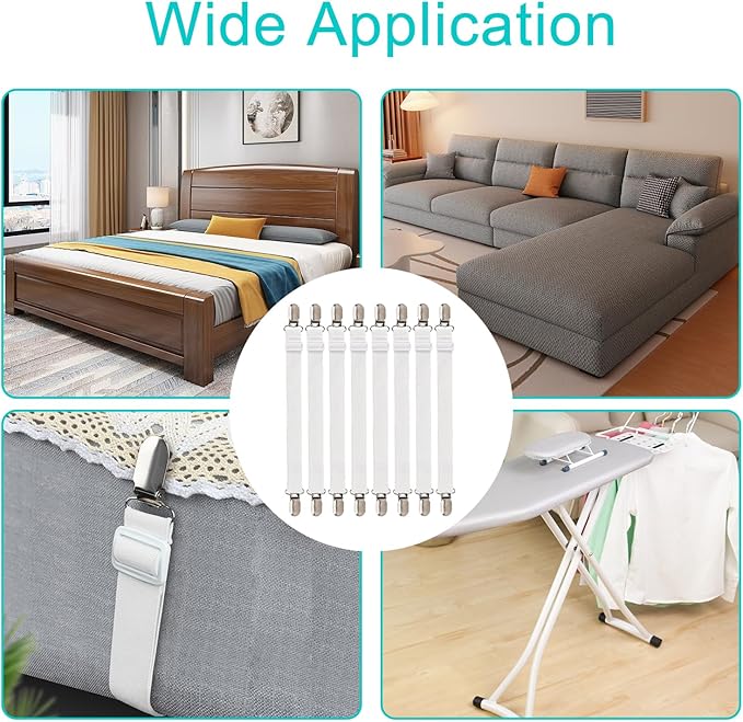 Vielseitig einsetzbar: Perfekt zum Befestigen von Bettlaken, Matratzenschonern, Bügelbrettbezügen, Tischdecken, Sofabezügen, Tagesdecken und vielem mehr – ideal für alle flachen Stoffflächen.