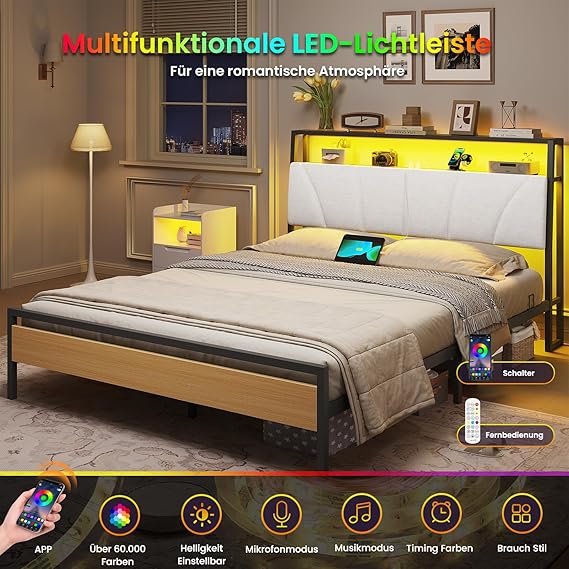 • Doppelbett 140×200 cm mit Ladefunktion: