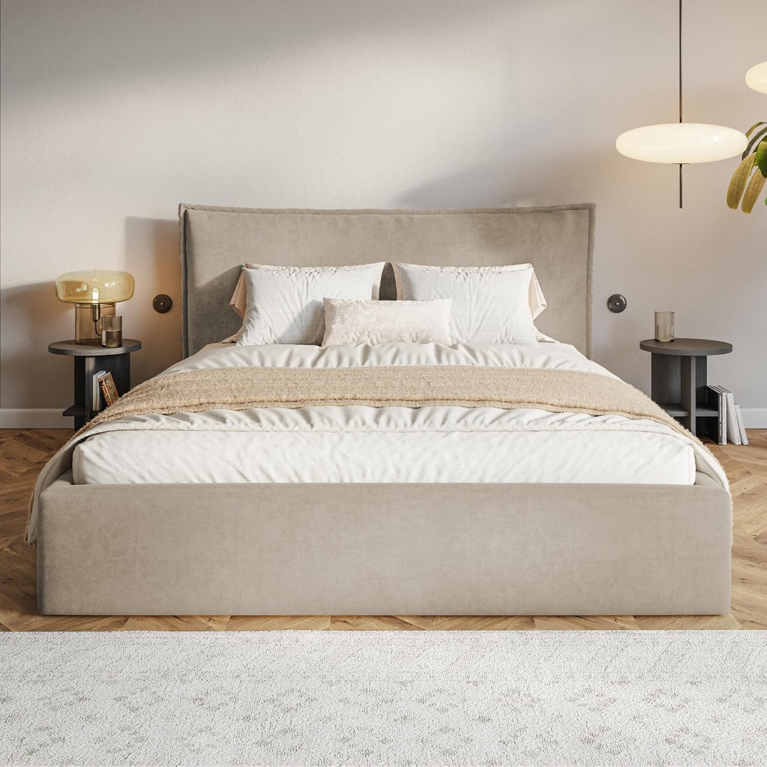 Dieses Polsterbett im Maß 120×200 in elegantem Beigesamt besticht durch sein modernes, zugleich zeitloses Erscheinungsbild. Es fügt sich harmonisch in verschiedenste Einrichtungsstile ein und verleiht dem Schlafzimmer eine warme, gemütliche Atmosphäre. Die stilvolle Optik verbindet sich mit hohem Komfort und schafft einen Ort für erholsamen Schlaf und tägliches Wohlbefinden.