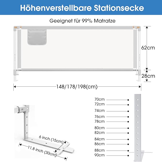Ideal für Massivholzbetten, Kinderbetten, Elternbetten oder große Doppelbetten. Für alle, die ihrem Kind nachts einen sicheren Schlafplatz bieten möchten.