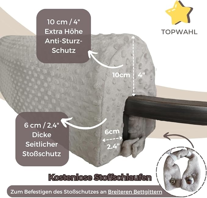 Dies ist keine gewichtete, tragbare Bettbarriere für offene Betten, sondern eine weiche, leichte Bettumrandung zur Erweiterung der Zaunhöhe in Kinderbetten mit bereits vorhandenen Seitenteilen – ideal für zusätzlichen Schutz und Polsterung.