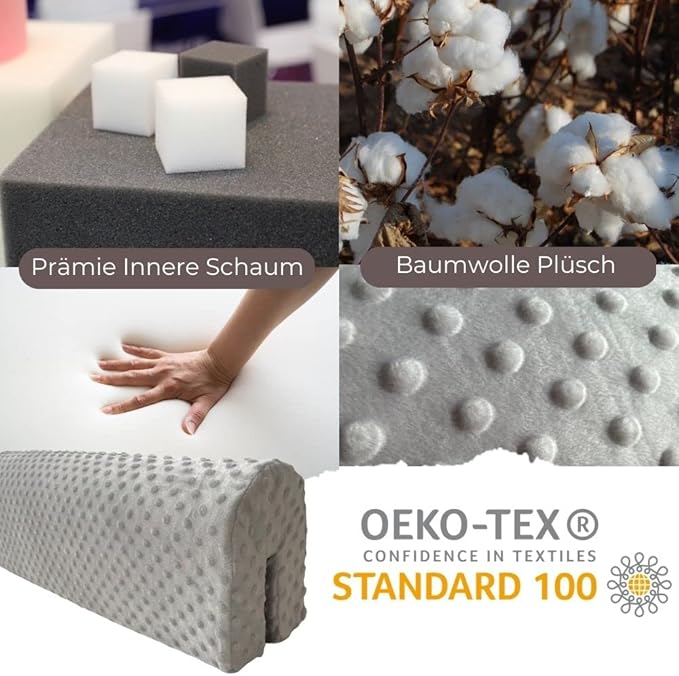 Gefertigt aus formstabilem Memory-Schaumstoff und umhüllt mit kuschelig weichem Fleece-Plüsch. Die Materialien sind angenehm zur Haut und bieten gleichzeitig optimale Sicherheit für einen erholsamen Schlaf.