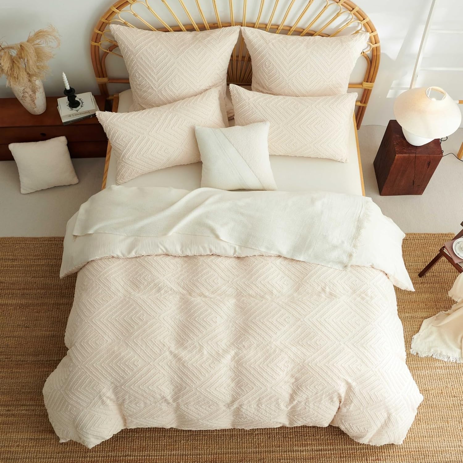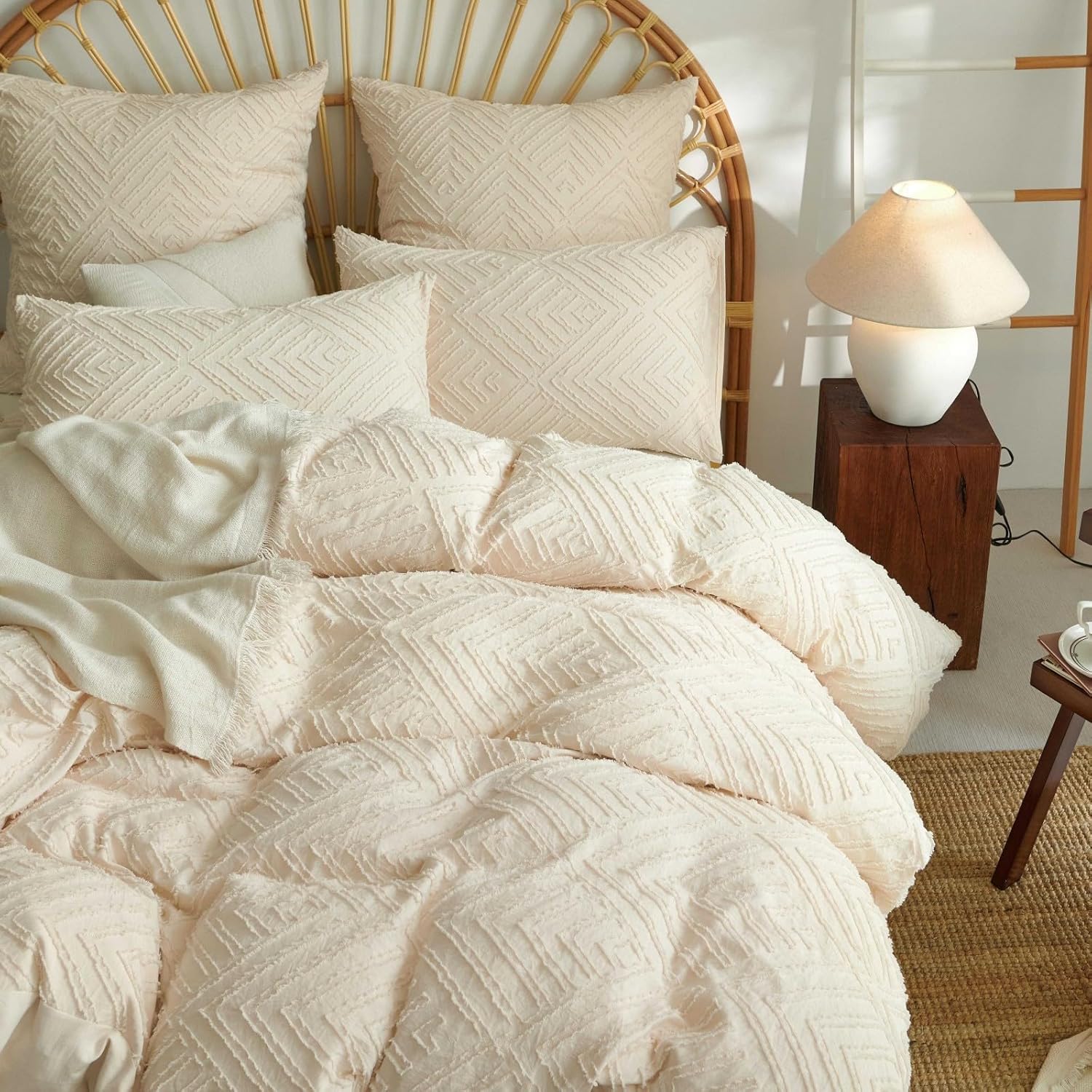 Boho-getuftete Bettwäsche aus gewaschener Mikrofaser: