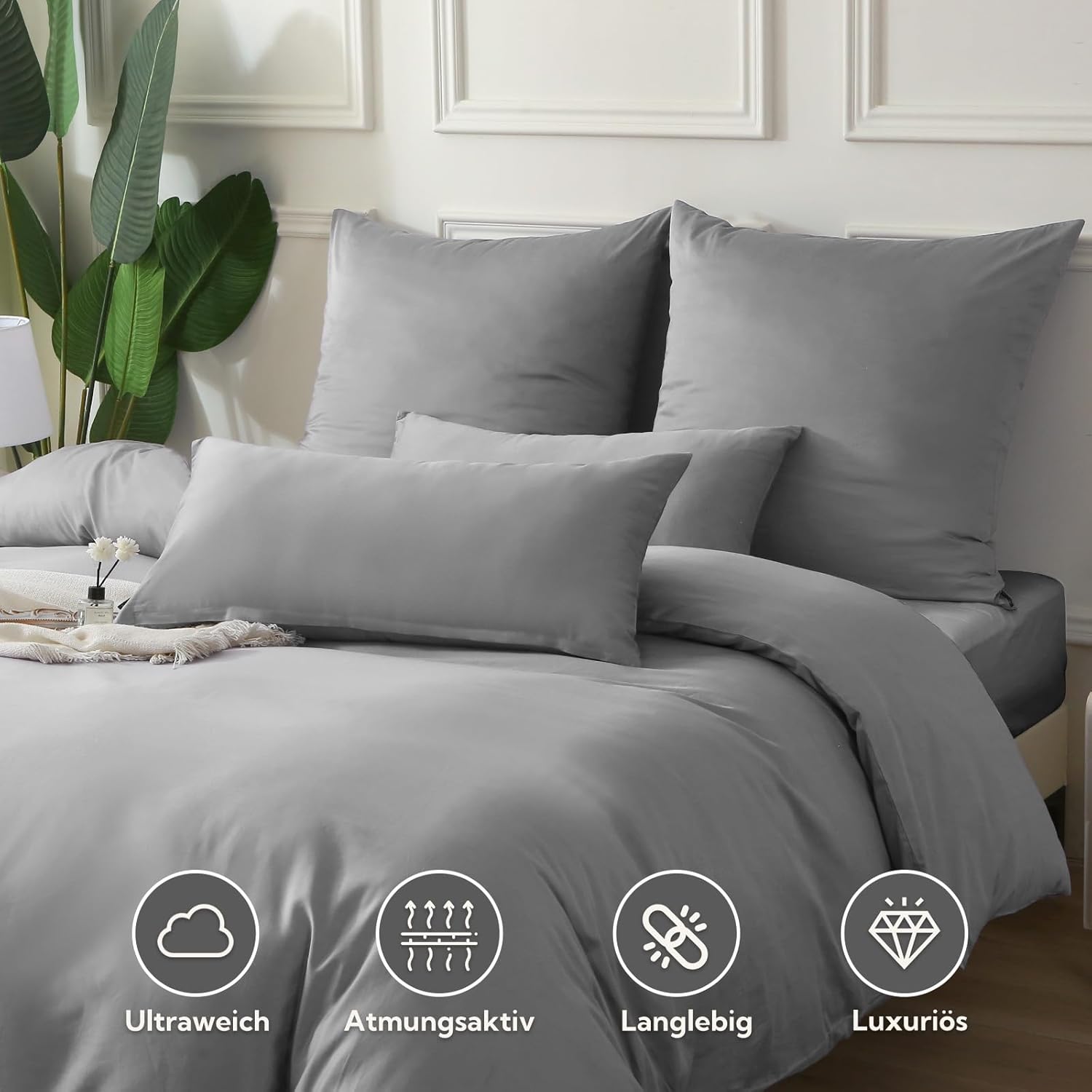 ✅ Seidiger Luxus & Eleganz – Die feine Satinbindung verleiht der Bettwäsche einen edlen, sanften Glanz, der Ihrem Schlafzimmer einen Hauch von Luxus verleiht. Die glatte Oberfläche fühlt sich nicht nur besonders geschmeidig an, sondern reduziert auch die Reibung auf Haut und Haar, was zu einem geschmeidigeren Hautbild und gesünderem Haar beiträgt. Perfekt für alle, die Wert auf ein luxuriöses Schlaferlebnis legen.