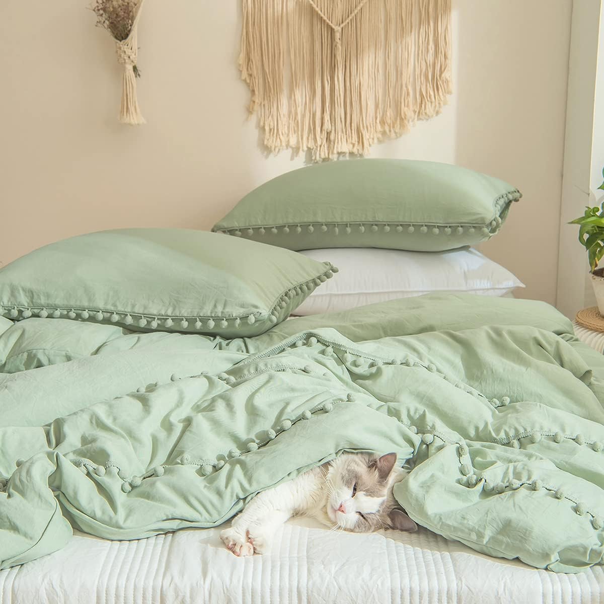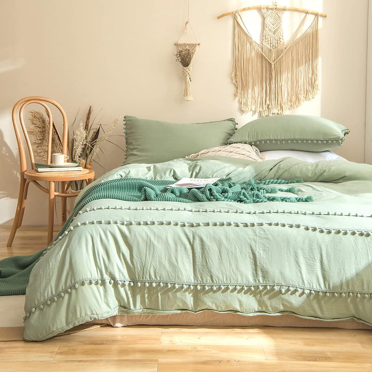 Das Bettwäsche-Set im Boho-Stil mit romantischen Pompon-Quasten verleiht jedem Schlafzimmer eine zeitlose Eleganz. Das Vintage-Design mit Fransen schafft eine gemütliche und stilvolle Atmosphäre, passend für alle Jahreszeiten – Frühling, Sommer, Herbst und Winter – für besten Schlafkomfort.