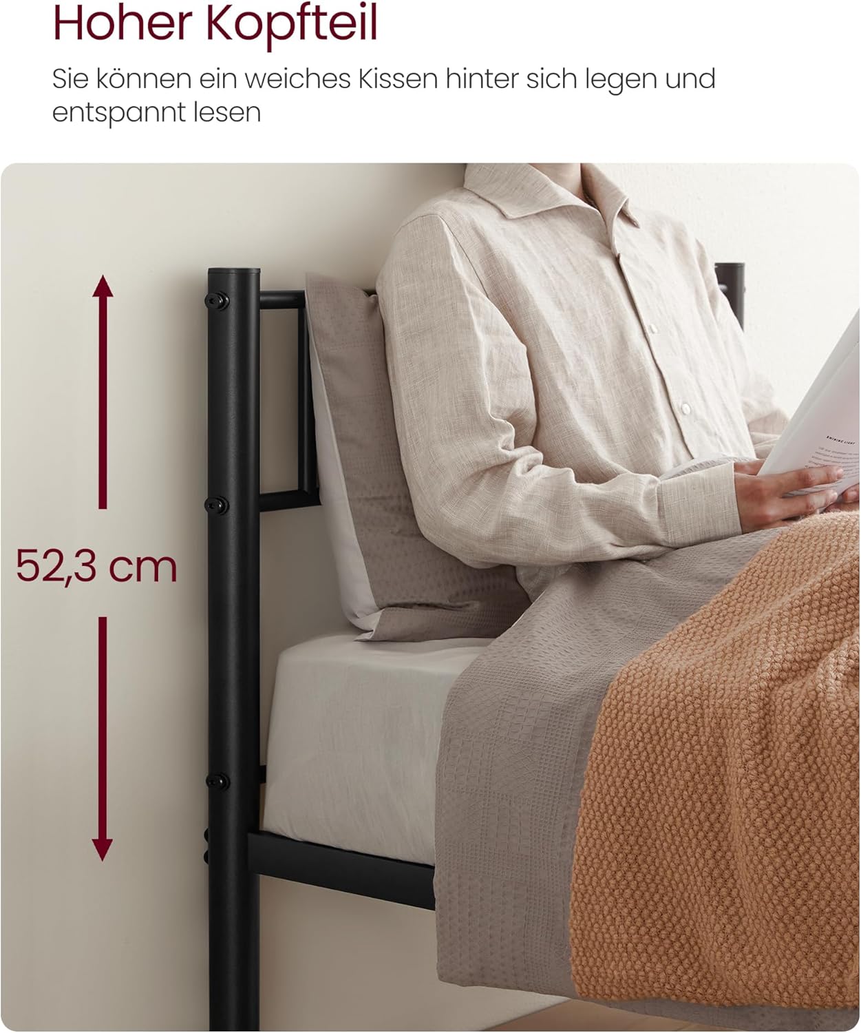 Featuring a sleek, minimalist look and a classic black finish, this bed frame complements both modern and traditional interiors. Its clean lines make it a perfect fit for bedrooms, guest rooms, or small spaces. The high headboard provides excellent back support for reading or relaxing, combining style with everyday comfort and functionality.
