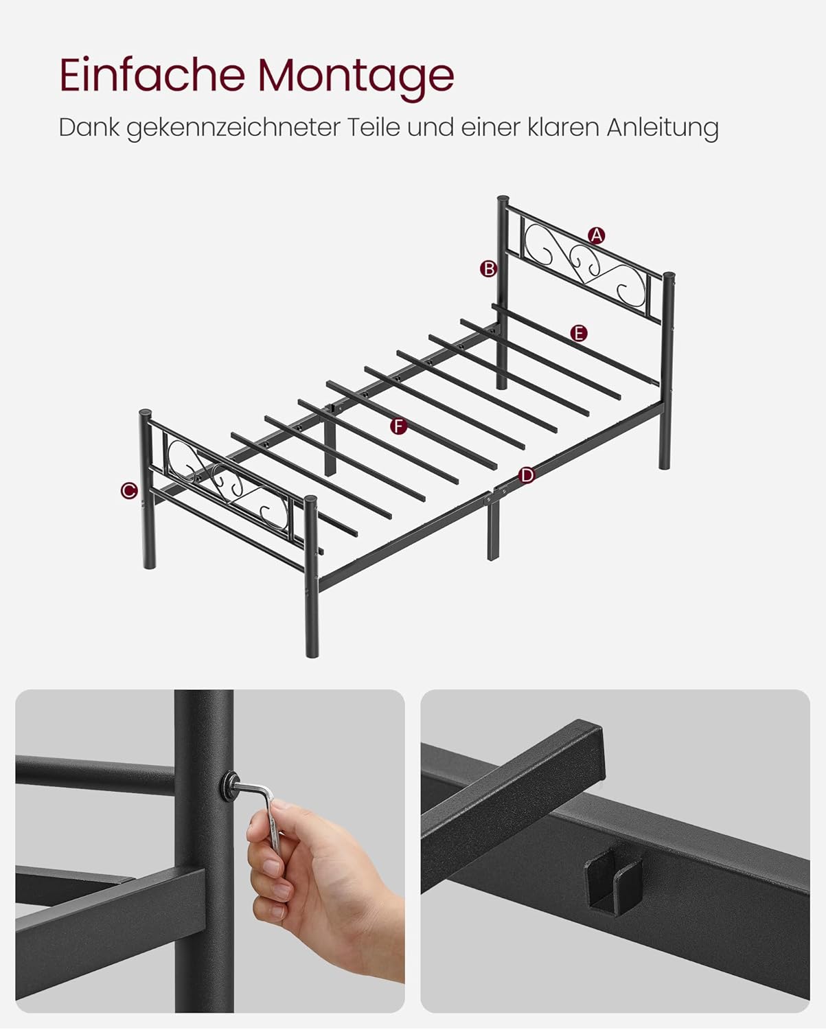 Designed for hassle-free setup, this metal bed frame includes clearly labelled parts and straightforward instructions. No professional help is required — you can assemble it quickly and confidently in just a few simple steps. The easy installation process saves time and effort, letting you enjoy your new bed frame right away.