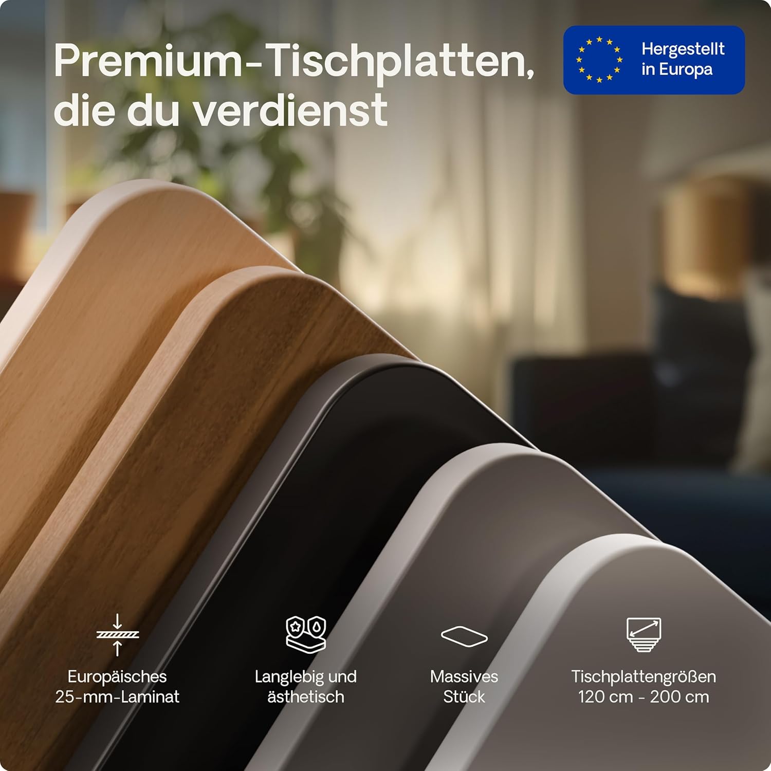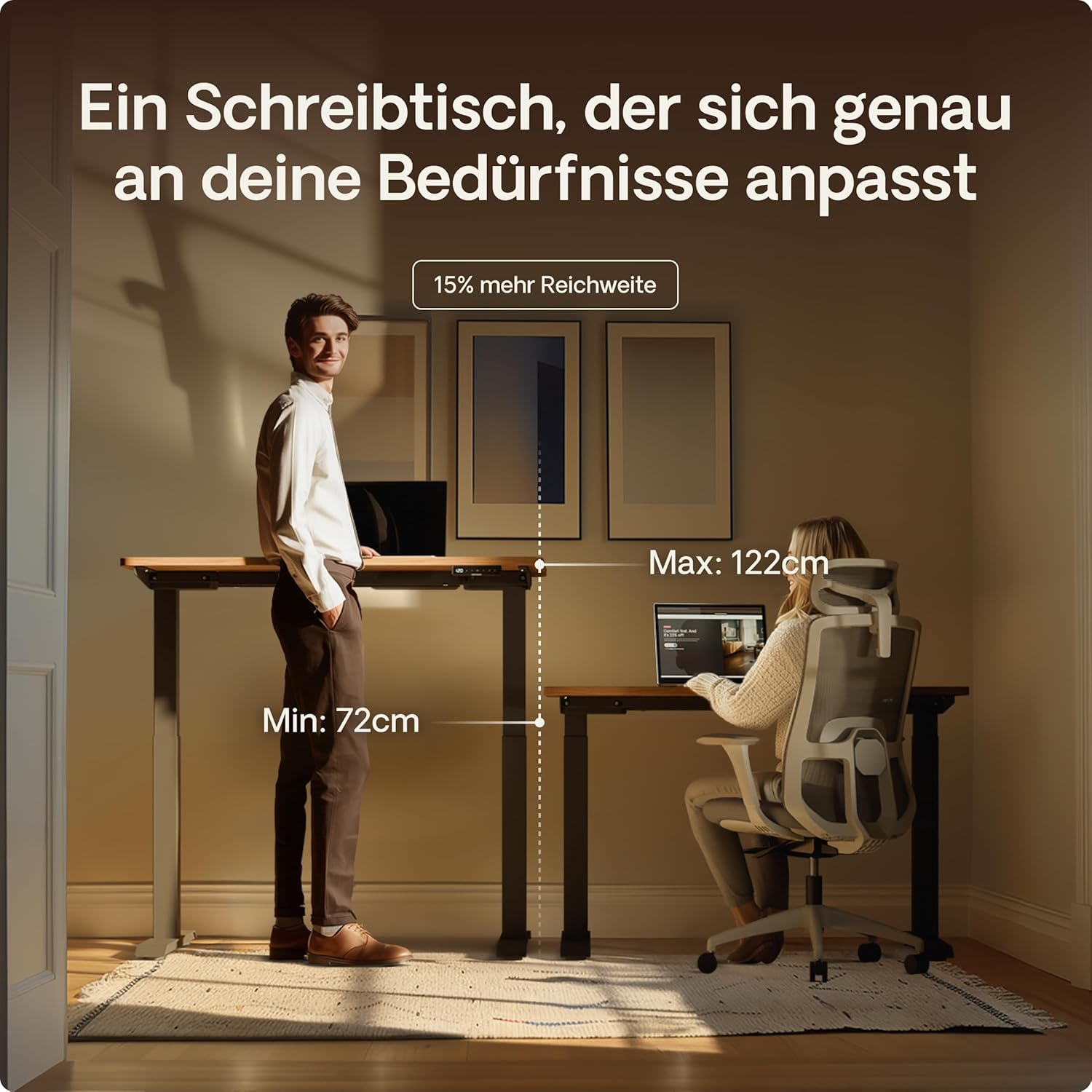 Mit der intuitiven Touchscreen-Steuerung kannst du die Tischhöhe in Zentimetern ändern und 3 bevorzugte Positionen für den schnellen Zugriff speichern.