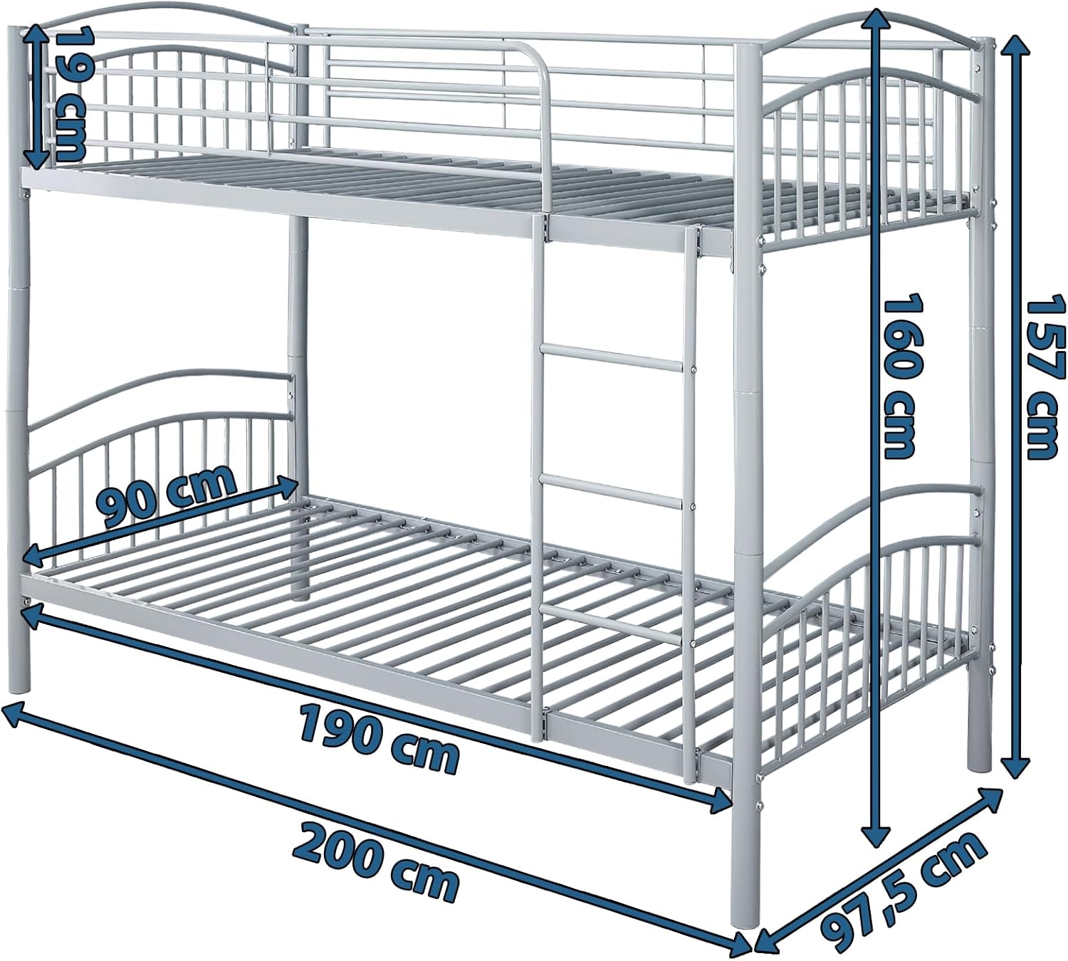 Das Bett wird in zwei Paketen geliefert (194 x 43 x 11,5 cm und 91,5 x 44 x 11 cm) und ist dank der pulverbeschichteten Metalloberfläche besonders widerstandsfähig und einfach zu reinigen. Farbe: Grau.