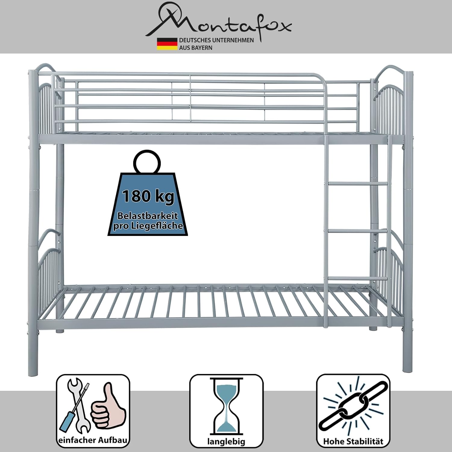 Metall-Etagenbett mit robuster Rahmenkonstruktion: