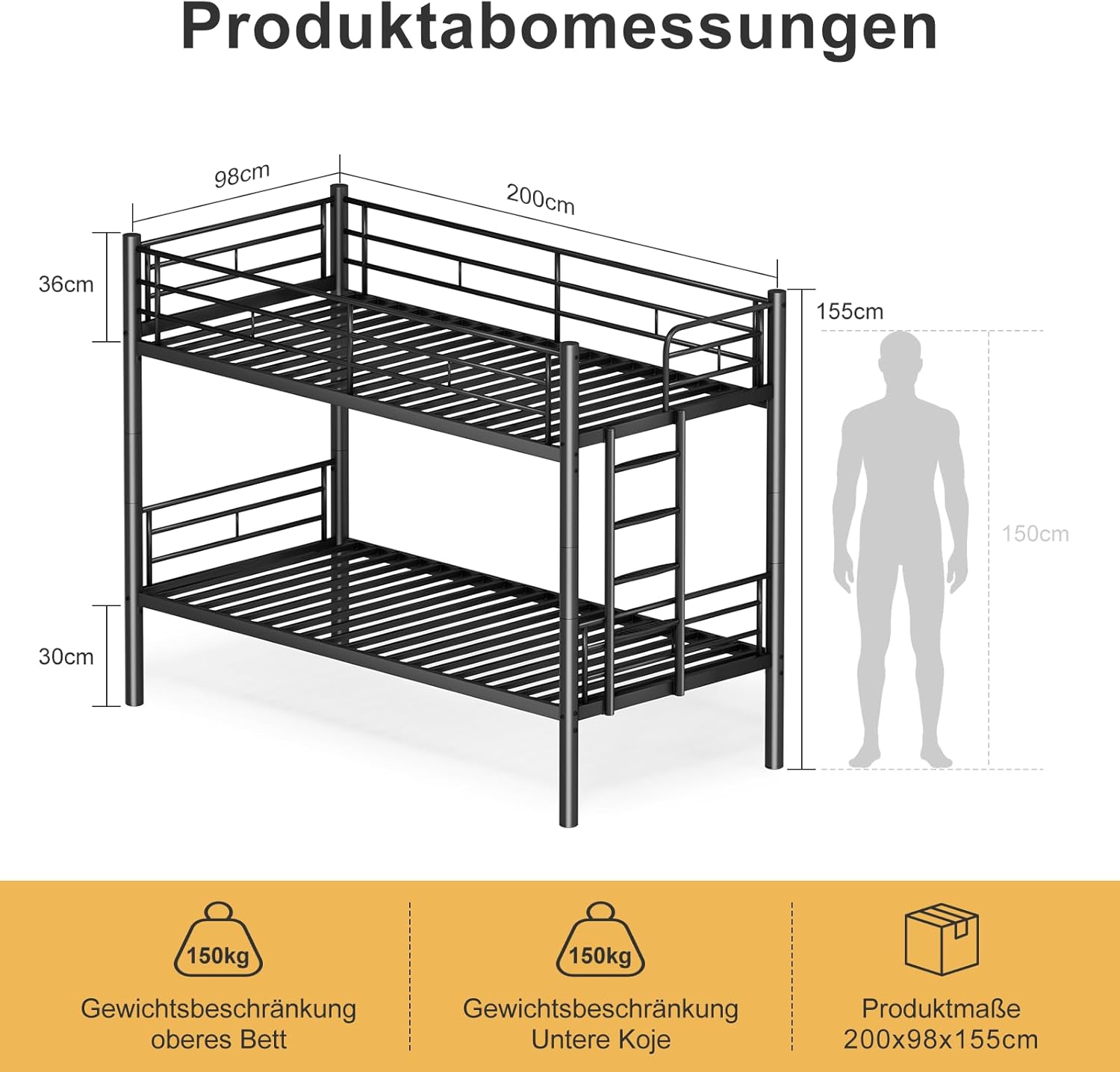 Schreibe die erste Rezension für „Etagenbett 90 x 200 cm mit Fallschutz und Lattenrost, in zwei Einzelbetten umwandelbar, funktionales Etagenbett – Schwarz“