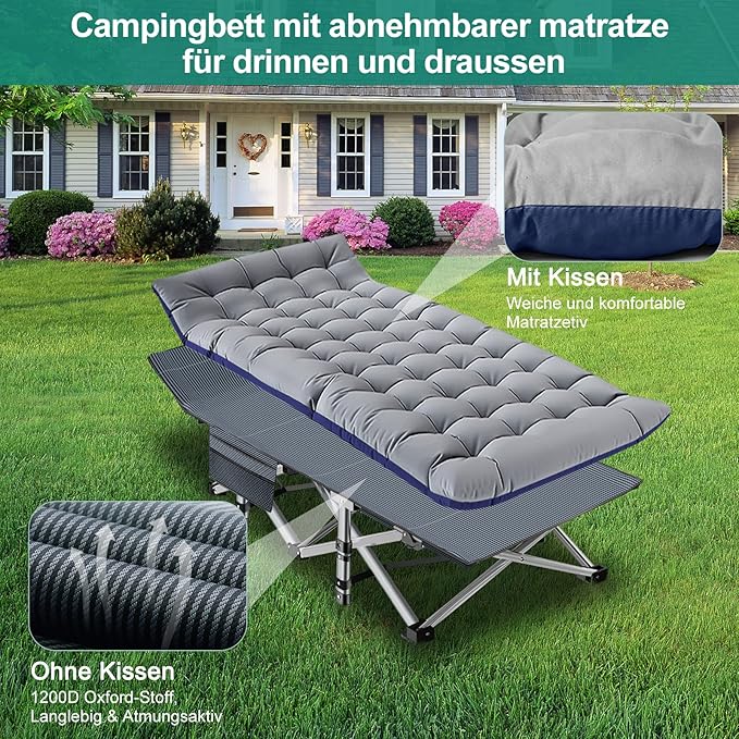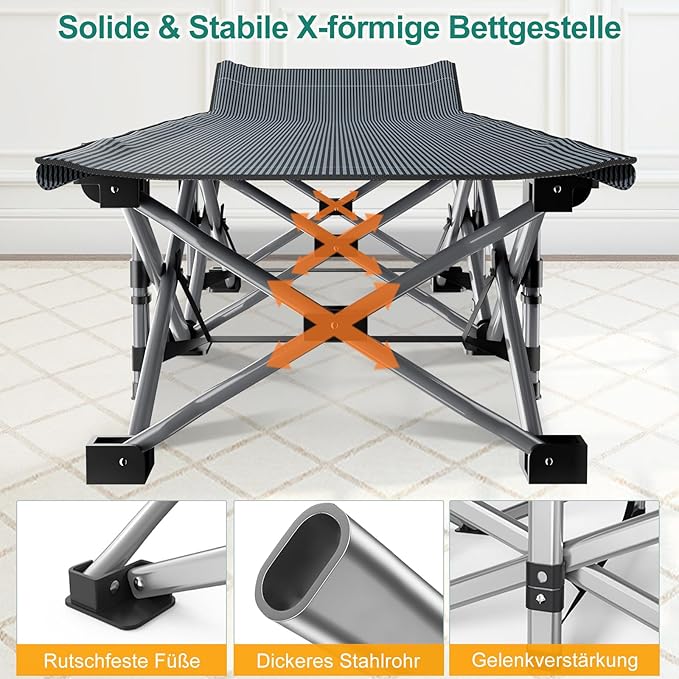 Faltbares Campingbett 190×71 cm, robust & mit Matratze