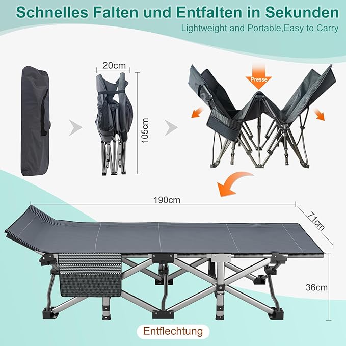 Whether camping, fishing, hiking , as a guest bed , in the office , or by the pool – this portable bed is the perfect companion for a variety of uses. Easy to transport and can be used anywhere – from the garden to the beach .