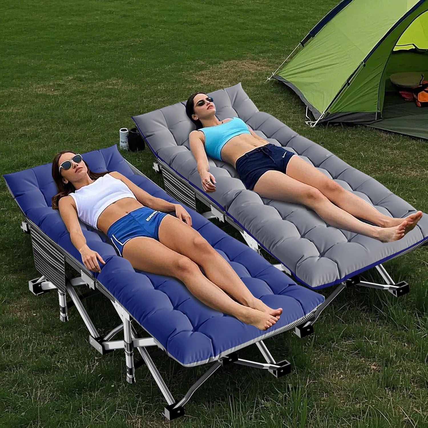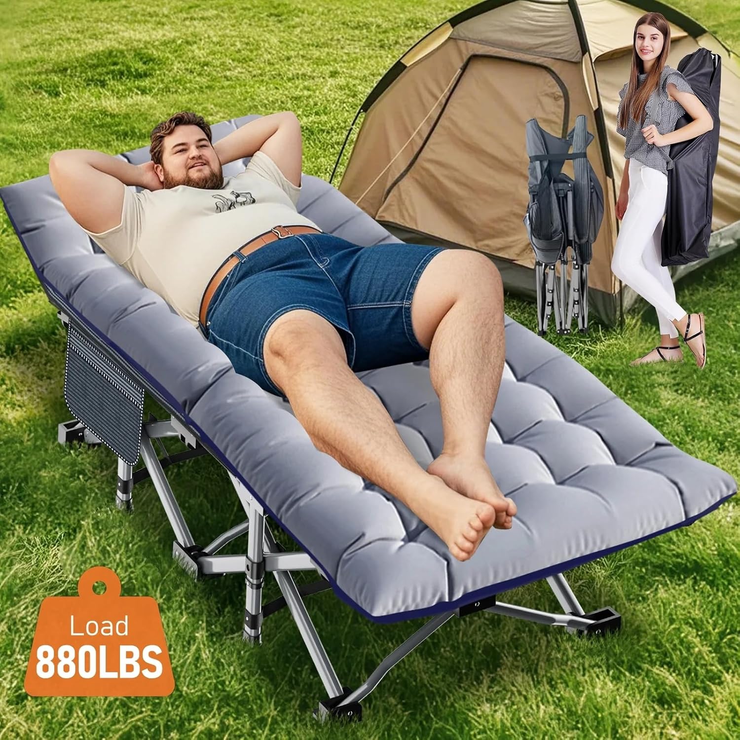 Thanks to the clever folding mechanism, the camp bed is ready for use in seconds , requiring no assembly.