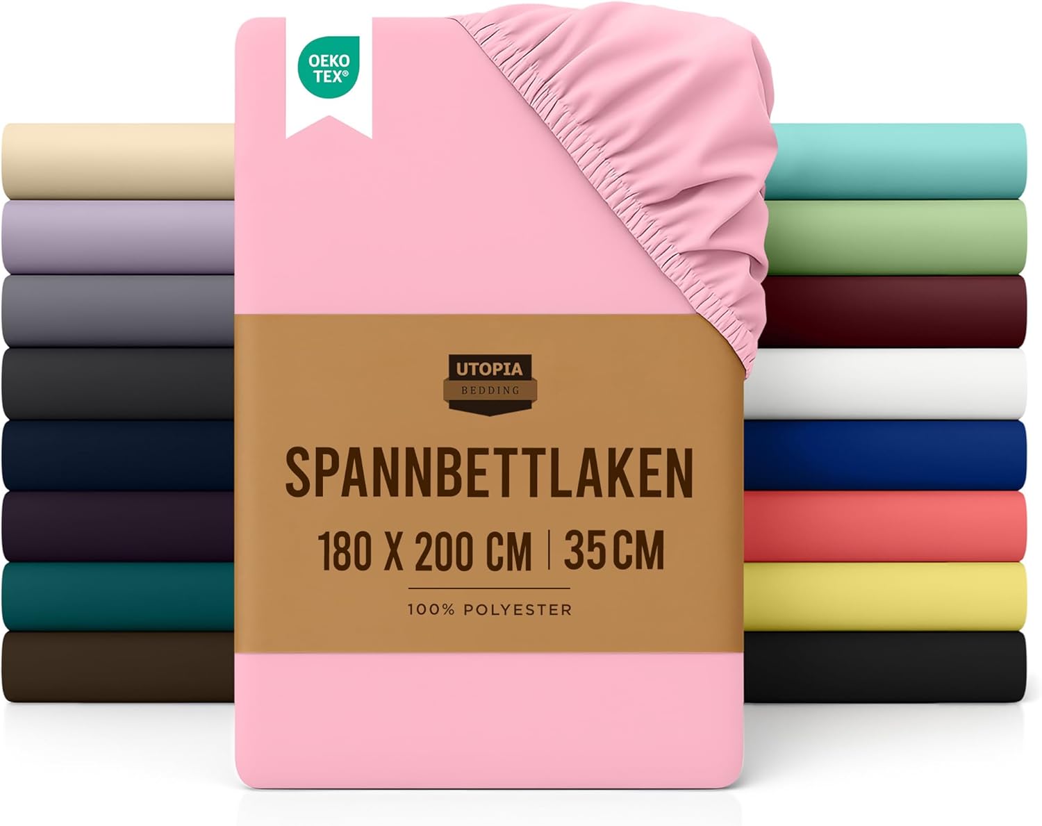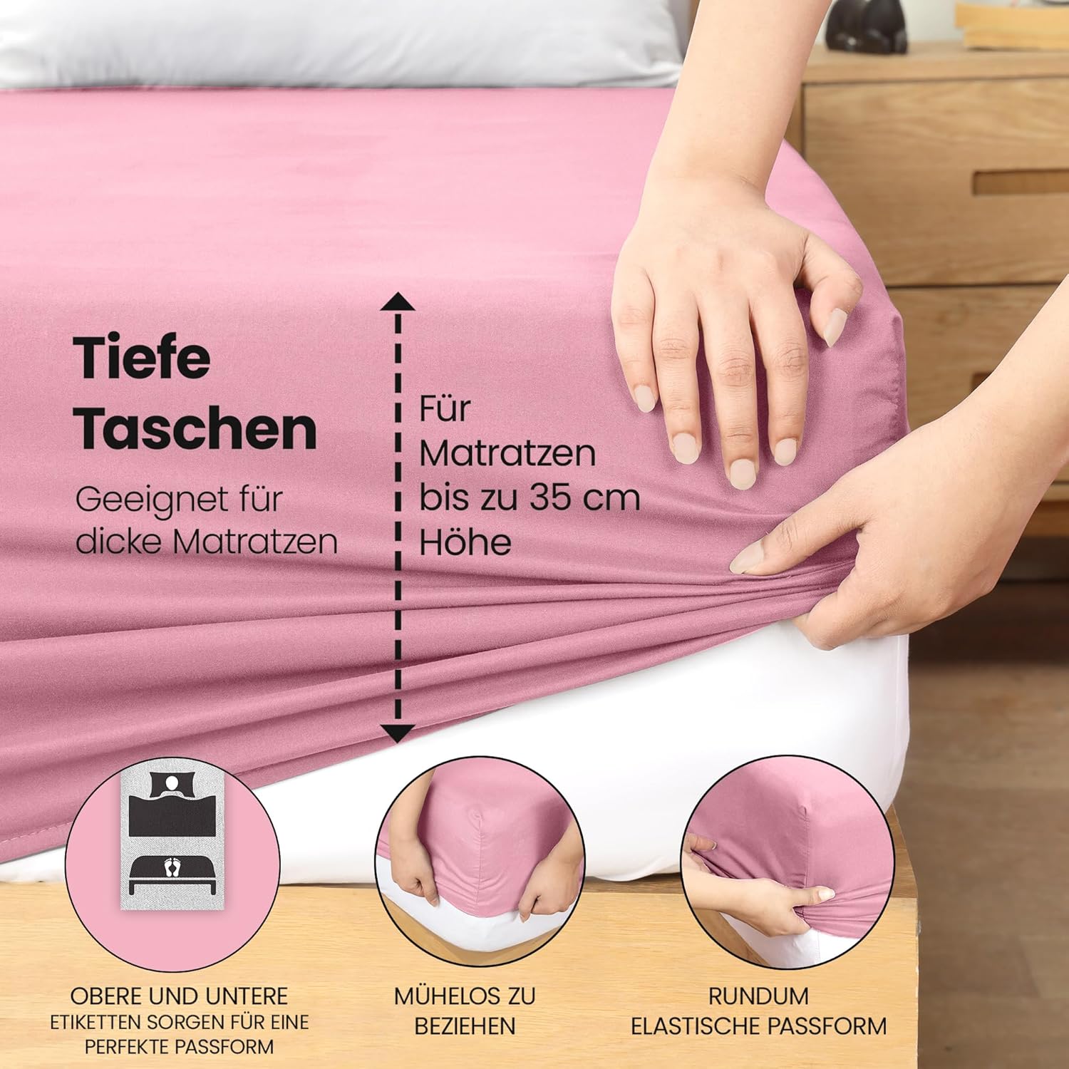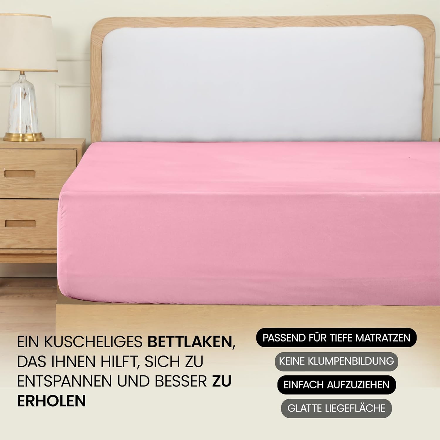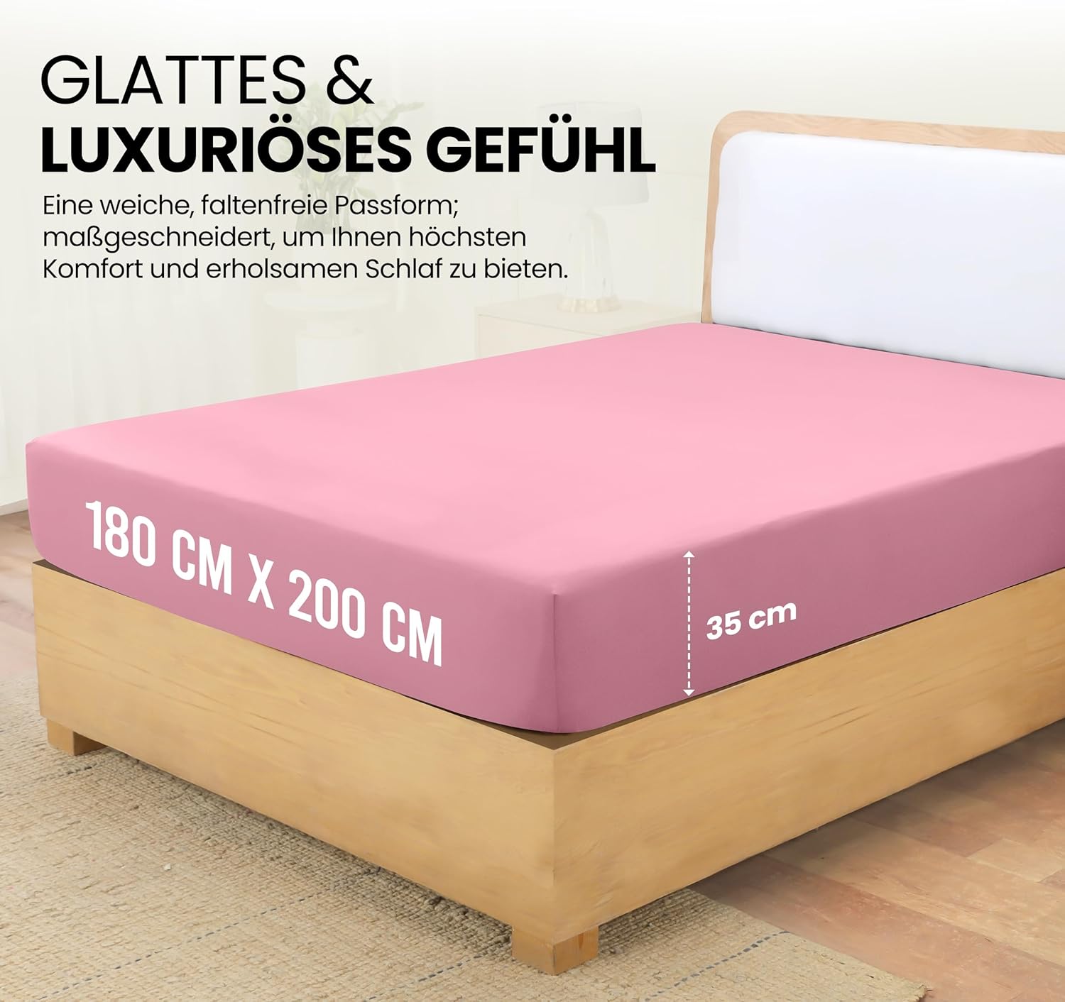 Spannbettlaken 180×200 cm Rosa 35cm Steghöhe