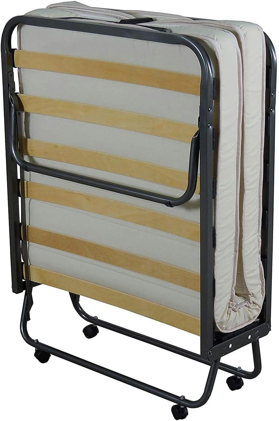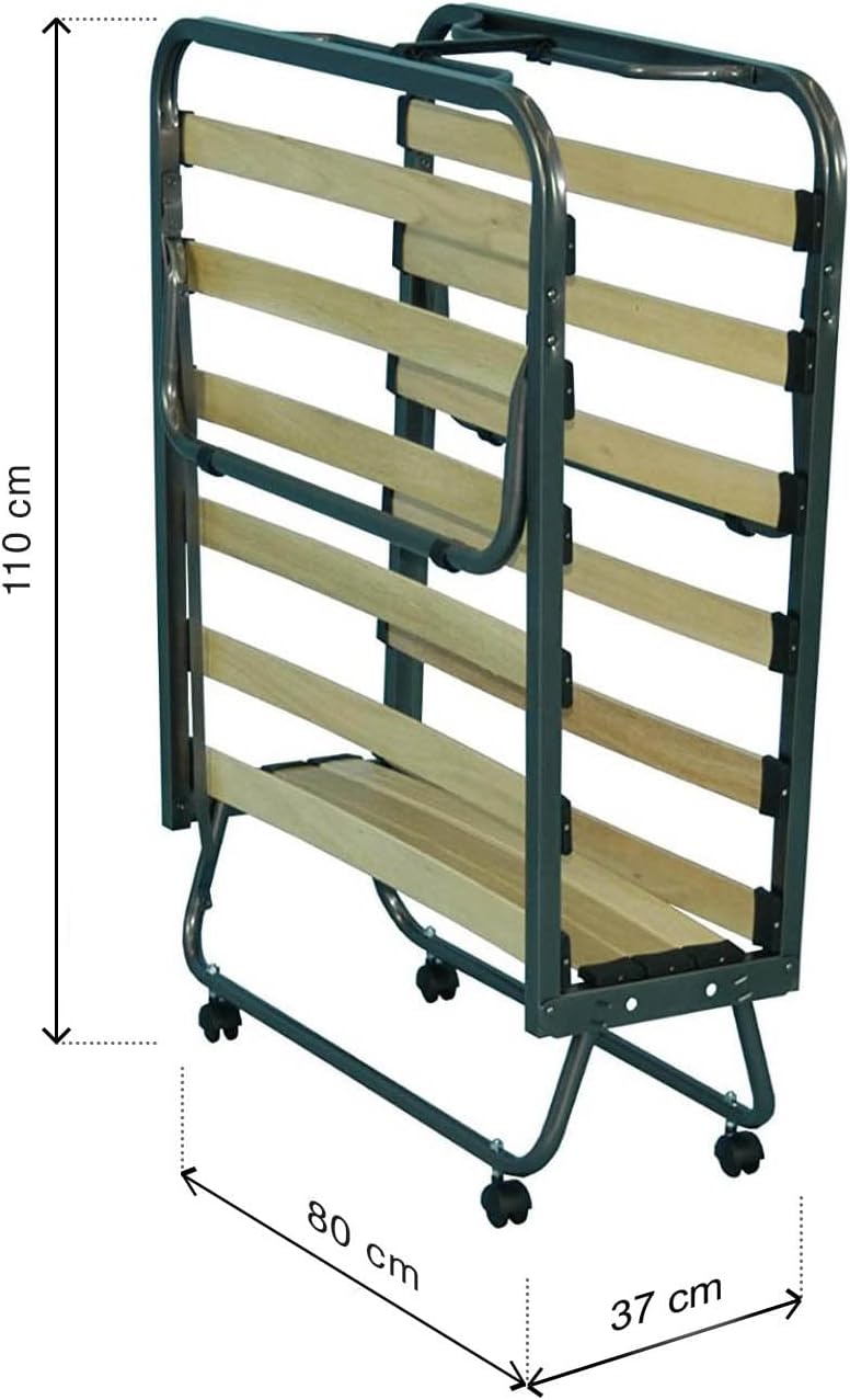 Das Klappbett bietet mit Maßen von 80 x 200 x 38 cm im geöffneten Zustand und 80 x 35 x 110 cm im geschlossenen Zustand eine kompakte und flexible Schlaflösung. Ideal für kleine Räume, Gästezimmer oder Ferienwohnungen – lässt sich leicht verstauen und schnell aufbauen.
