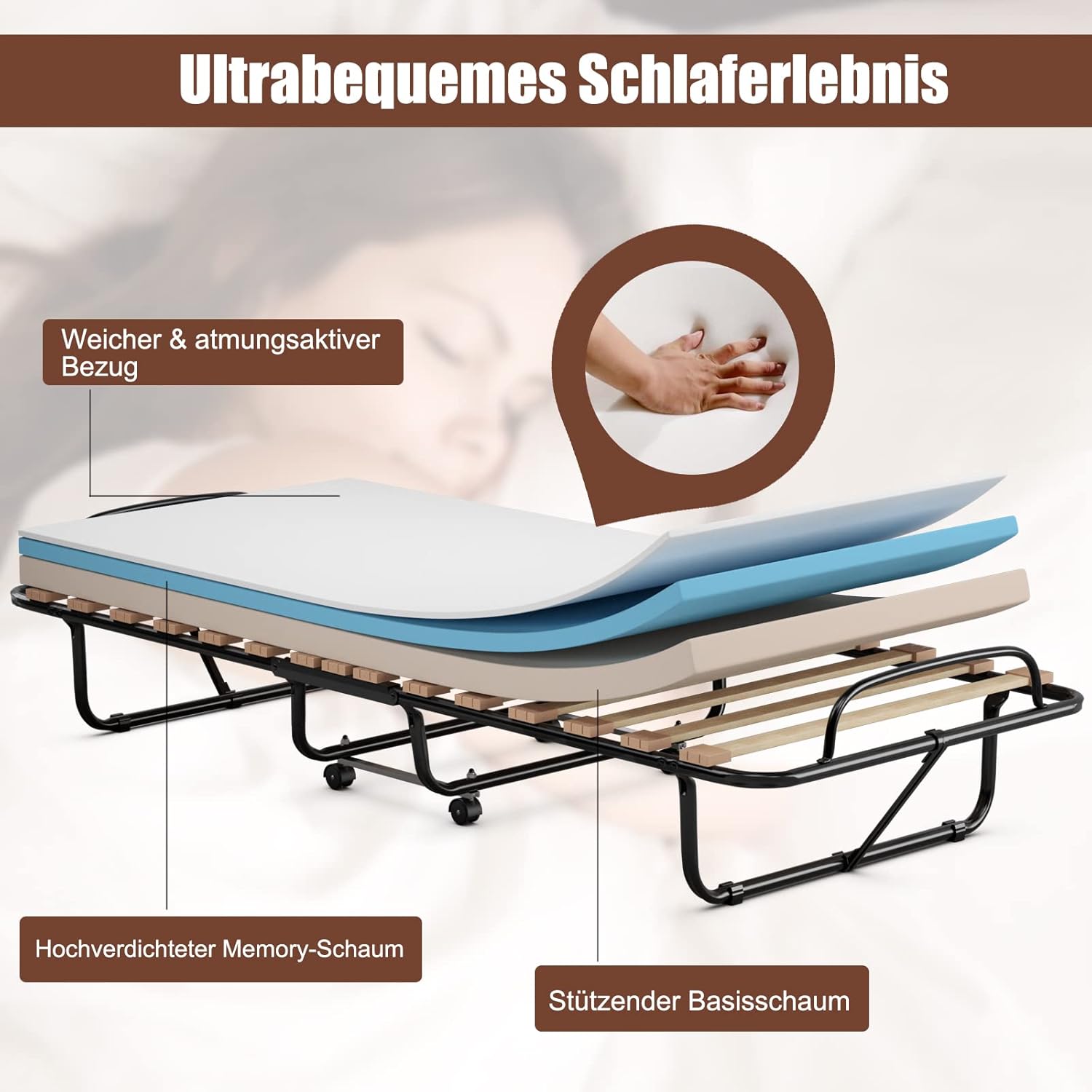 Designed for convenience, this folding bed includes four smooth-rolling wheels for effortless movement. You can easily transport or reposition the bed anywhere you like. The wheels glide quietly without scratching the floor, offering a practical and noise-free mobility solution in any environment.