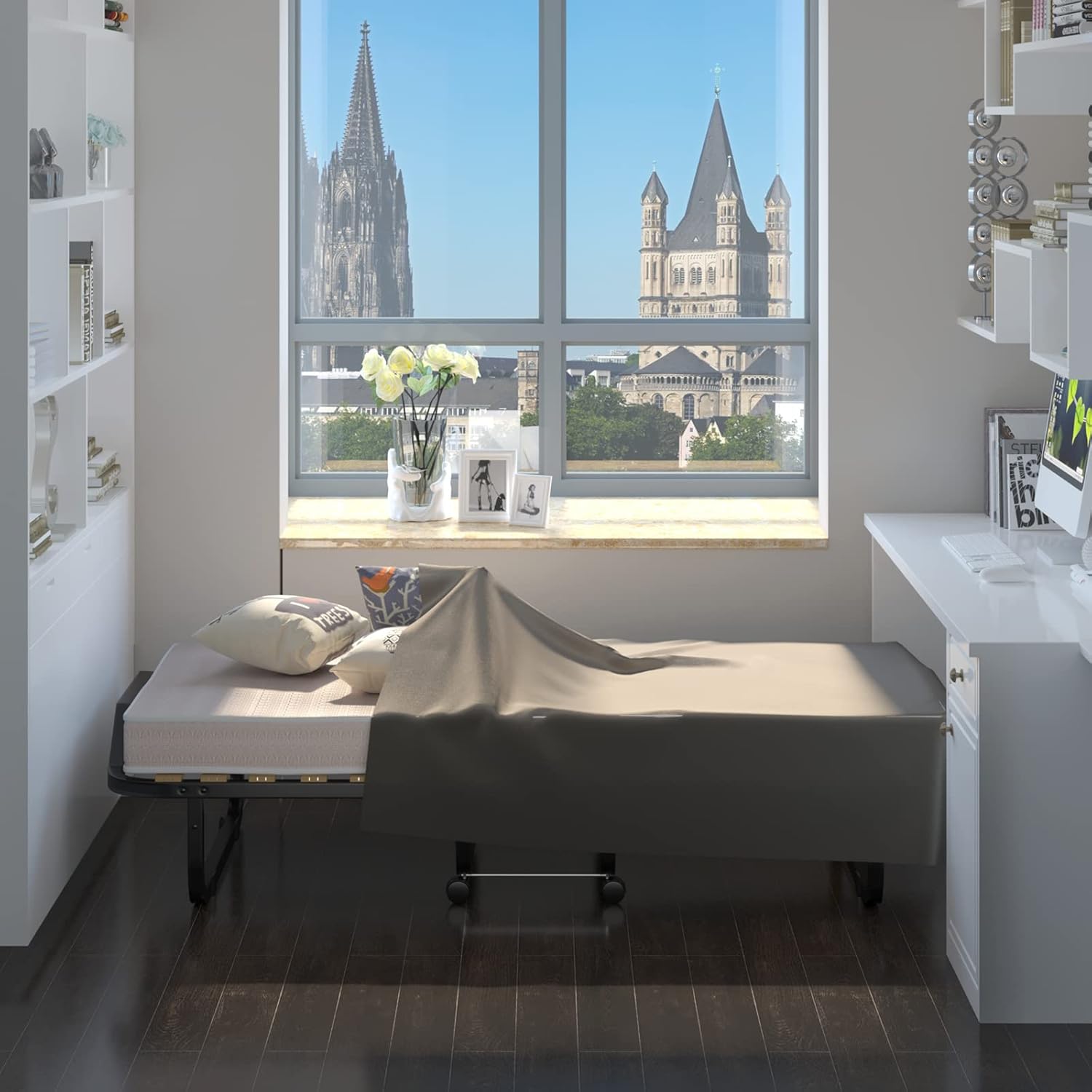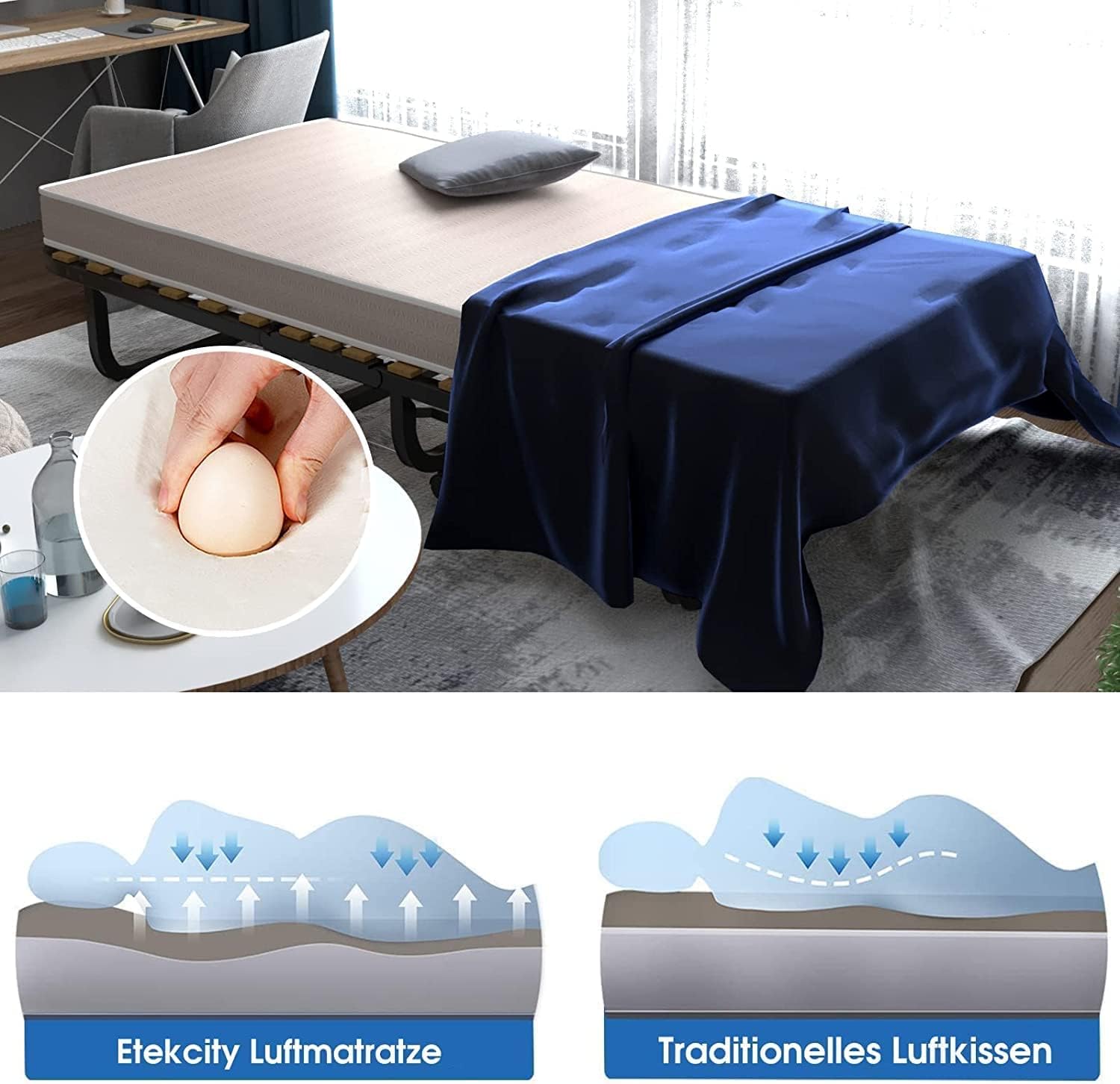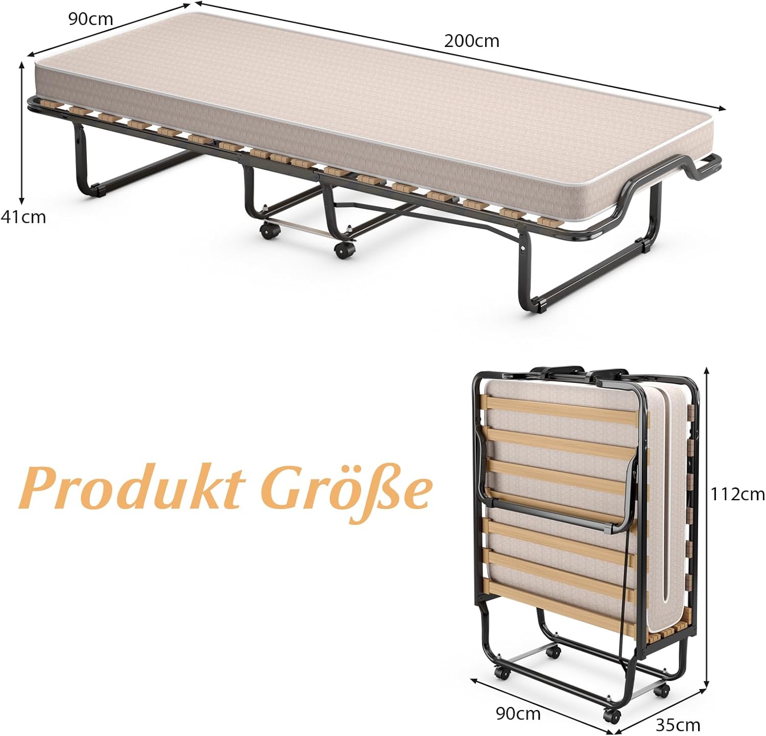 Featuring a smart foldable design, this guest bed can be easily folded and stored under a bed, cabinet, or in a corner when not in use. It includes four smooth universal wheels for effortless movement, making it convenient to transport or reposition anywhere in the home. Perfect for small spaces and quick setup.