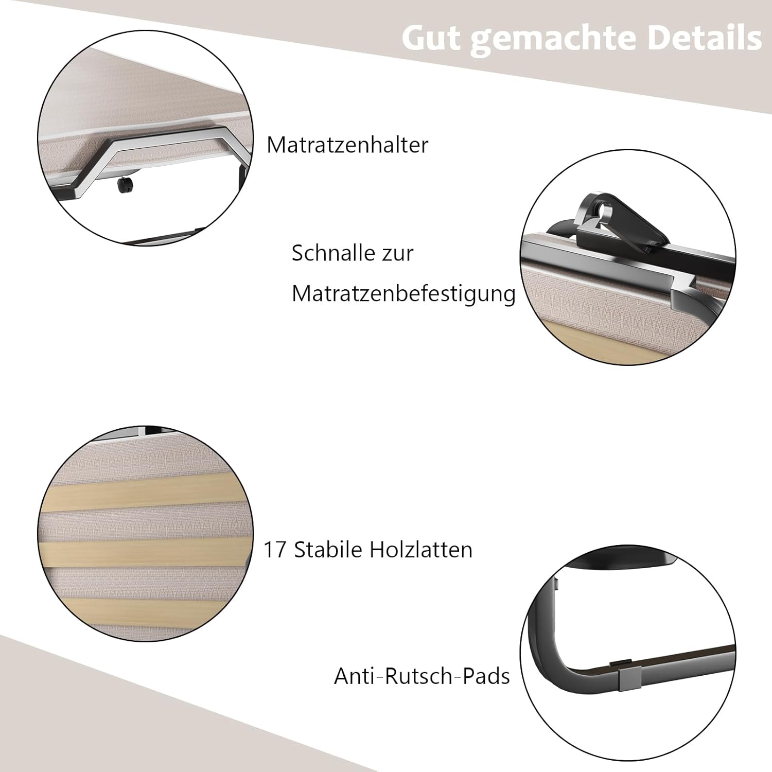 Crafted from high-quality steel, this folding bed ensures excellent stability and strength, supporting up to 120 kg. The frame is equipped with four non-slip feet that protect your floor and enhance balance. Its durable construction guarantees long-term use while maintaining solid and safe sleeping support.
