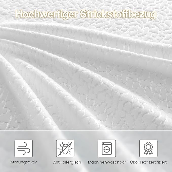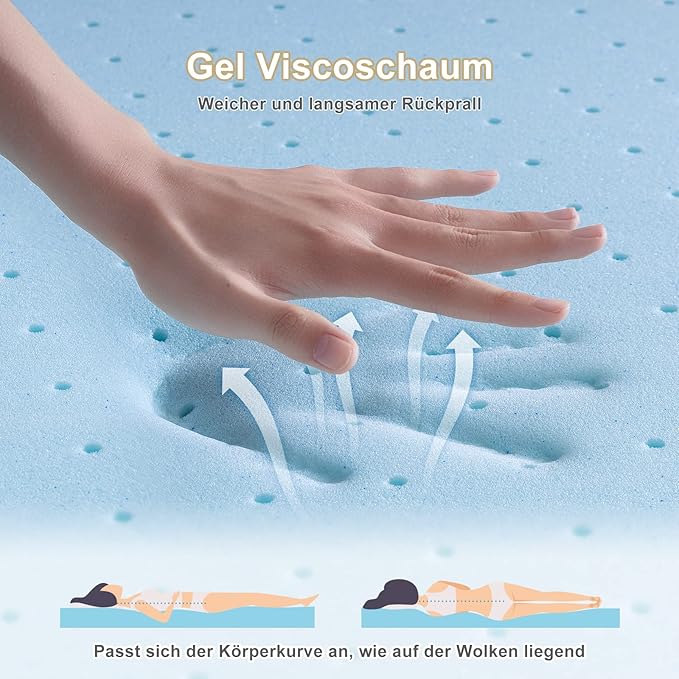Der hochwertige Gel-Schaum passt sich präzise den Körperkonturen an und reduziert Druckpunkte – ideal für Seiten-, Rücken- und Bauchschläfer. Die Gel-Komponente und die atmungsaktive Perforation fördern eine angenehme Temperaturregulierung.