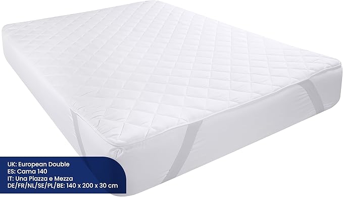 ✅ Perfekte Größe & Passform – Die gesteppte Matratzenauflage passt ideal auf Matratzen mit den Maßen 140×200 cm. Dank der elastischen Bänder bleibt sie sicher an Ort und Stelle und eignet sich für Matratzen mit einer Tiefe von bis zu 30 cm. (Hinweis: Nicht wasserdicht)