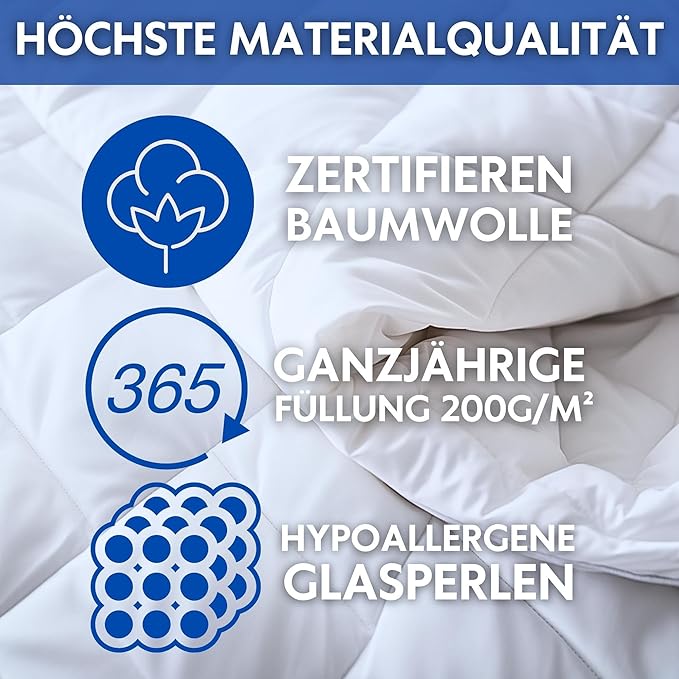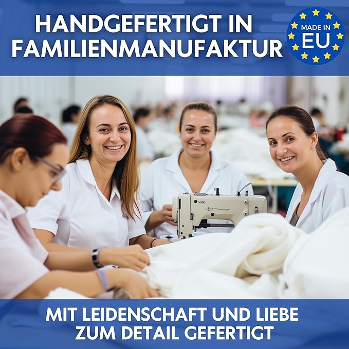 Gefertigt aus hochwertigen, zertifizierten Materialien, die nicht nur allergikerfreundlich sind, sondern auch Feuchtigkeit effektiv ableiten. So bleibt die Haut angenehm trocken und das Schlafklima jederzeit frisch und gesund.