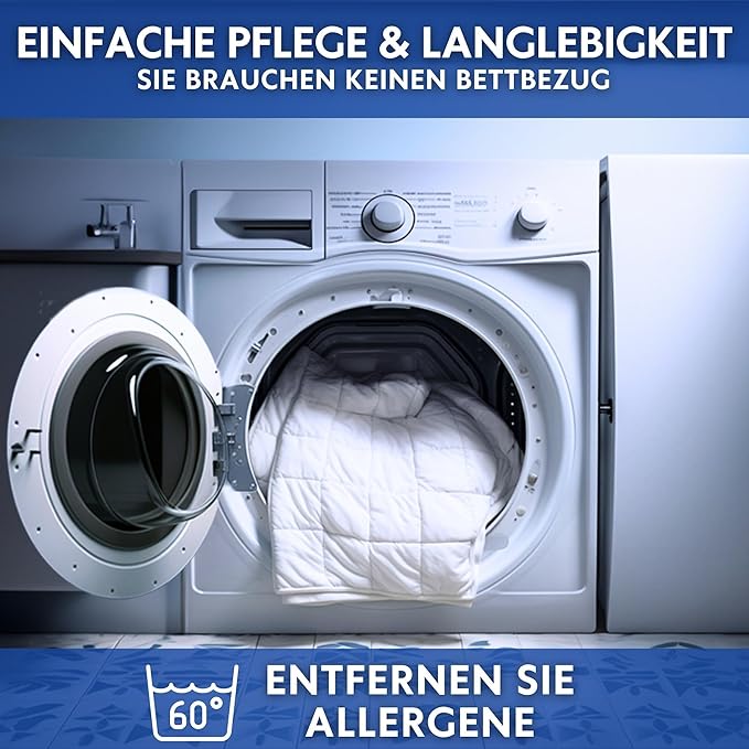 Die Decke ist maschinenwaschbar bei 60°C und behält auch nach zahlreichen Waschgängen ihre Form und Qualität. Das sorgt für dauerhafte Hygiene, Frische und eine unkomplizierte Reinigung – ideal für den täglichen Gebrauch.