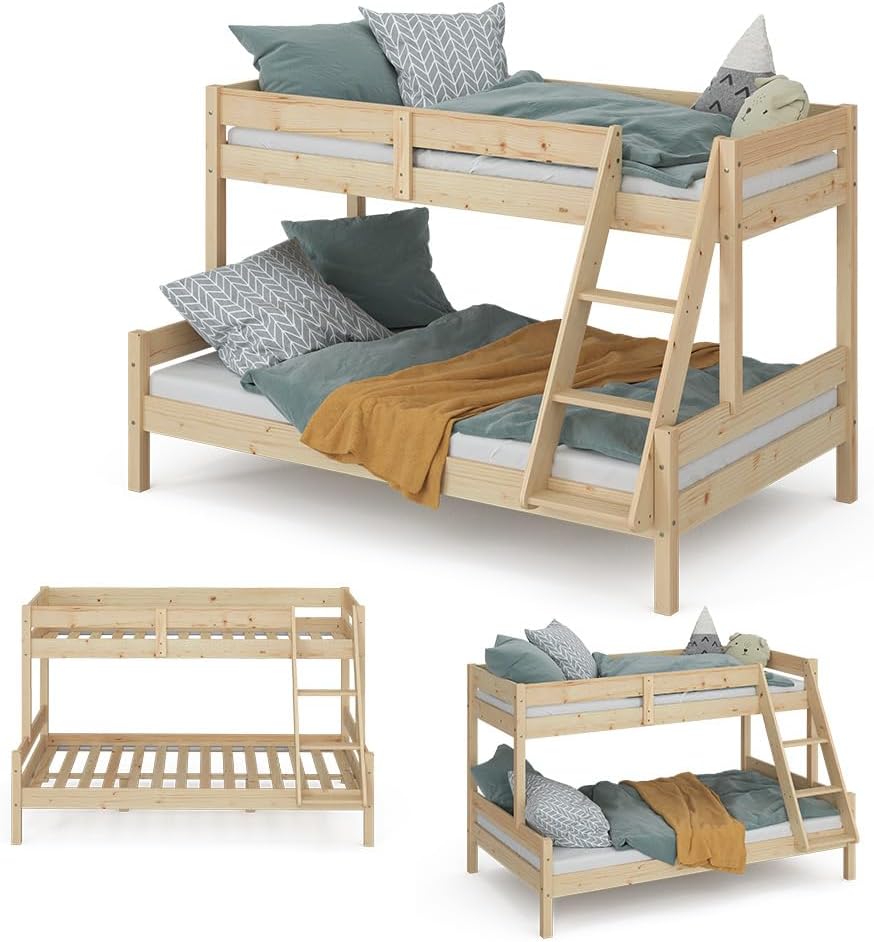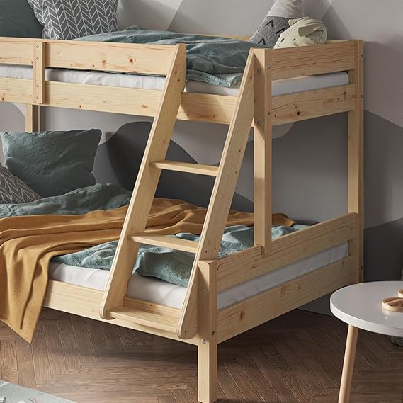Made from solid natural pine wood, this bunk bed offers high durability, sturdy support, and a long-lasting frame designed to withstand daily family use. The natural wood finish adds a warm and timeless look that complements both modern and traditional interiors. A strong and environmentally friendly material choice that enhances stability and user comfort.