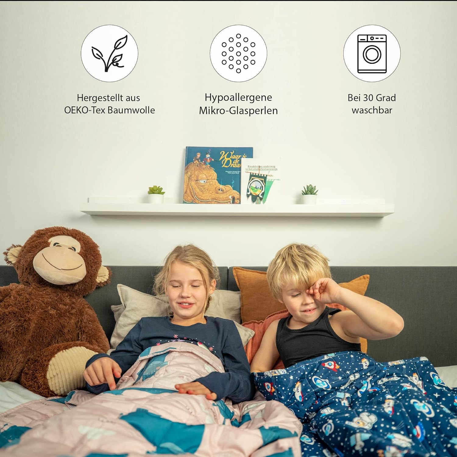 Mit sieben komfortablen Schichten und einer Außenschicht aus weicher, kühlender OEKO-TEX-zertifizierter Baumwolle ist die Decke ideal für empfindliche Kinderhaut.