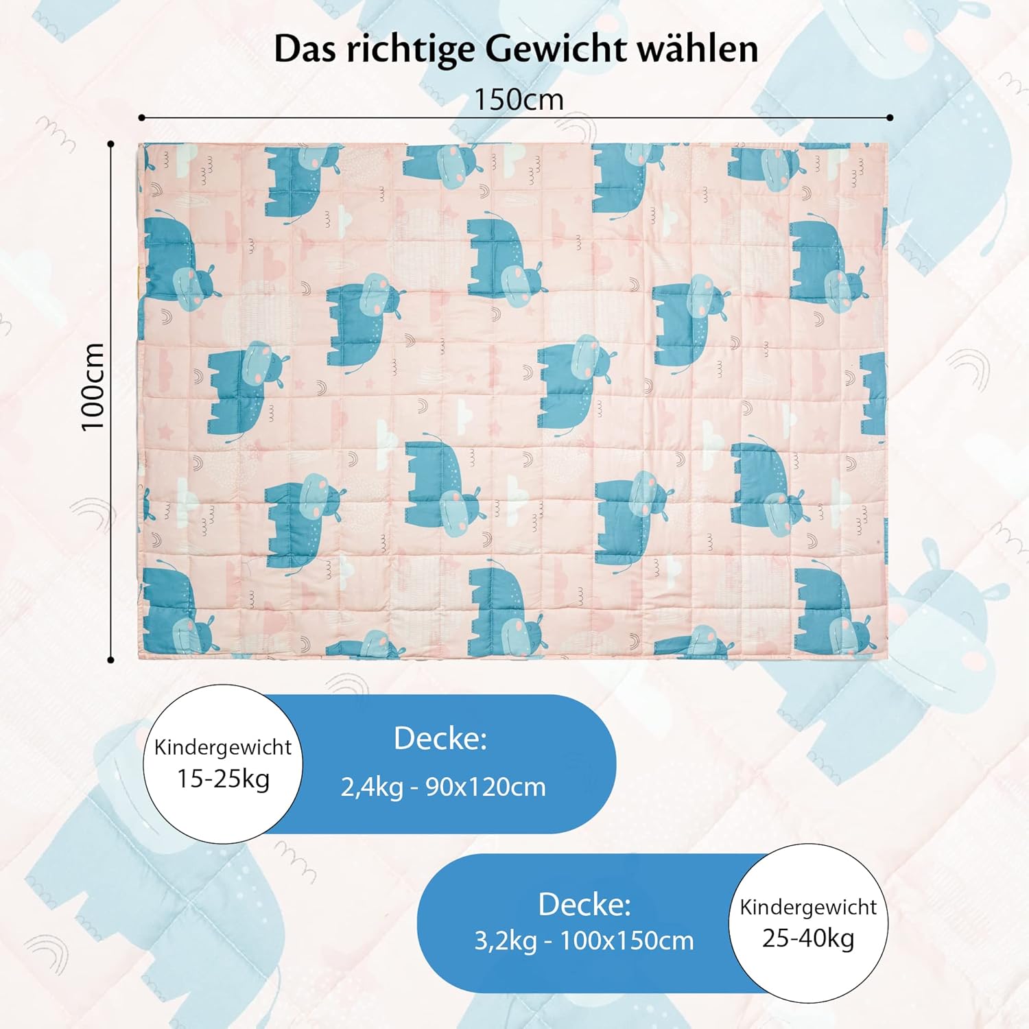 Farbe: Grau mit Hippo-Motiv, 3,2 kg