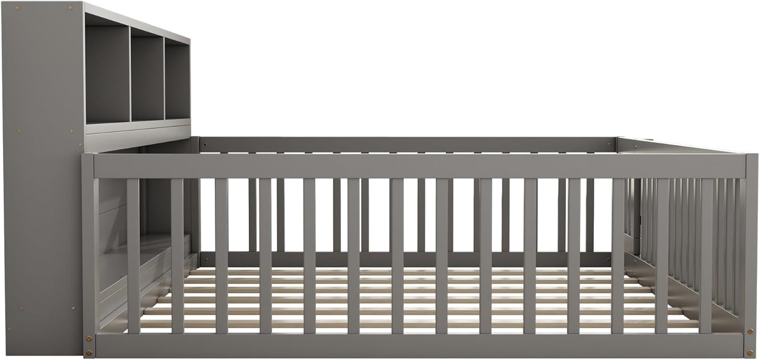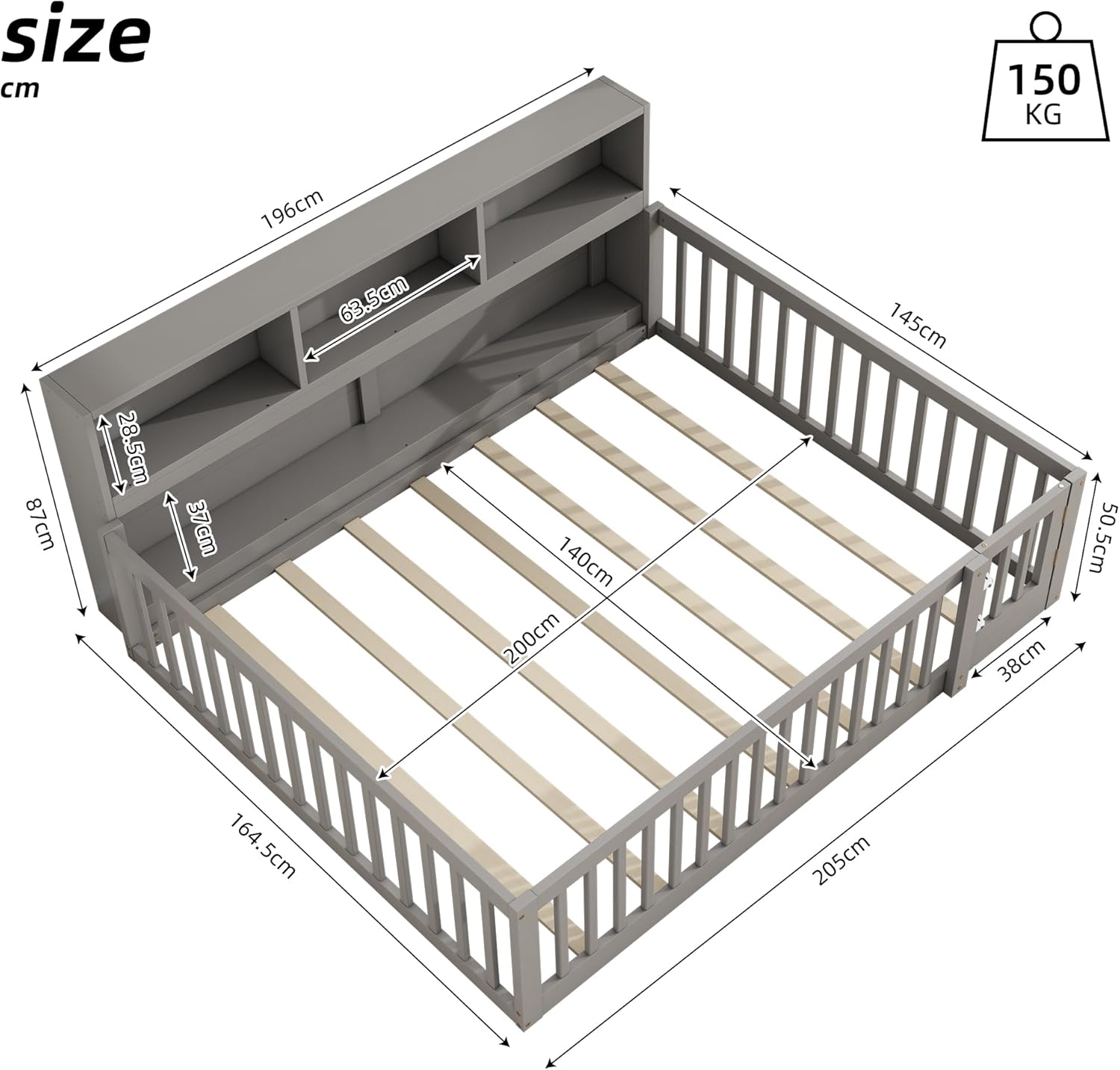 Mehrere Ablagefächer an der Seite des Bettes bieten praktischen Stauraum für Bücher, Spielzeug, Mobiltelefone oder andere Alltagsgegenstände. So können wichtige Dinge griffbereit verstaut werden. Der zusätzliche Stauraum sorgt für Ordnung im Kinderzimmer und macht das Bett besonders funktional und alltagstauglich.
