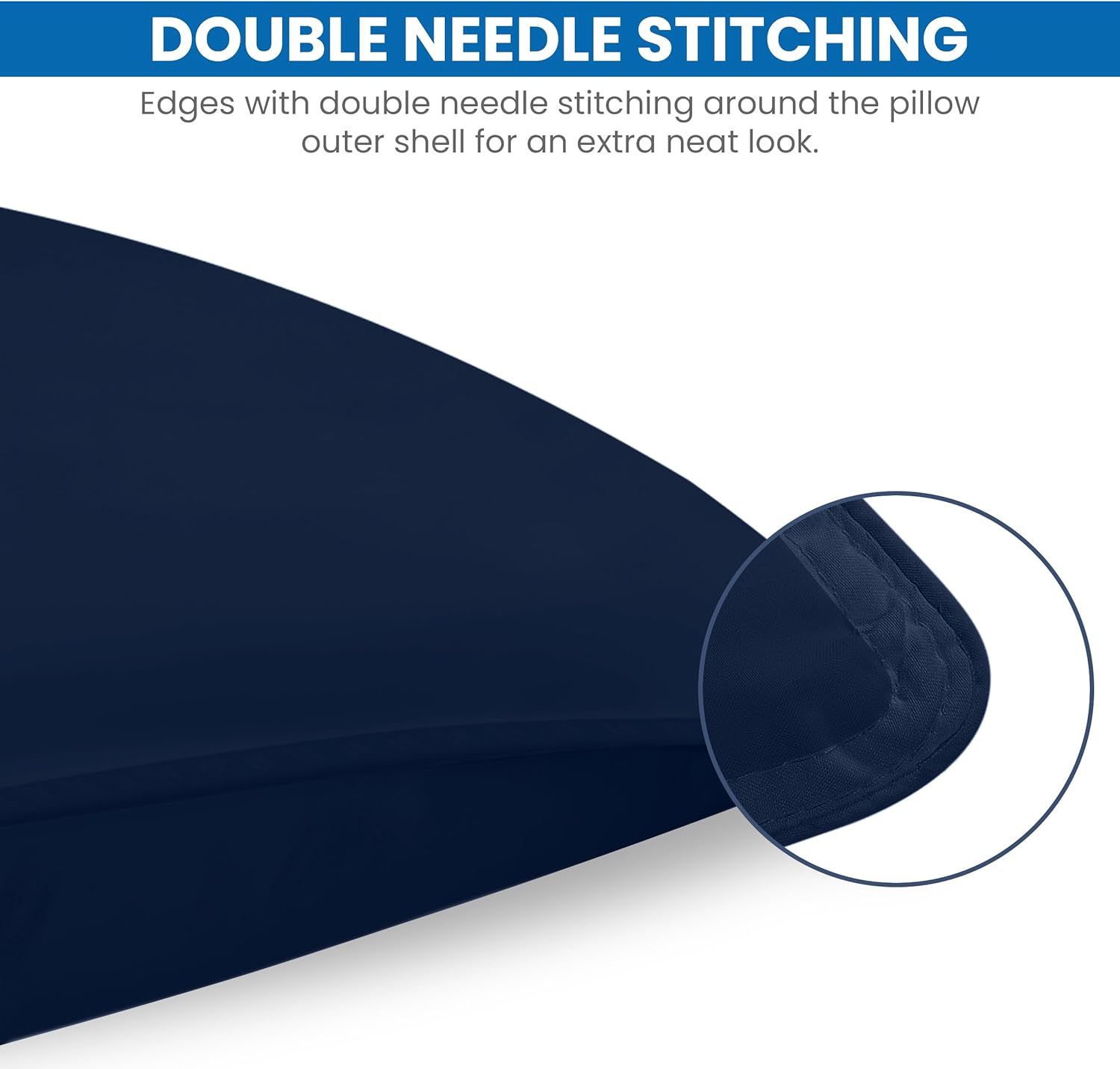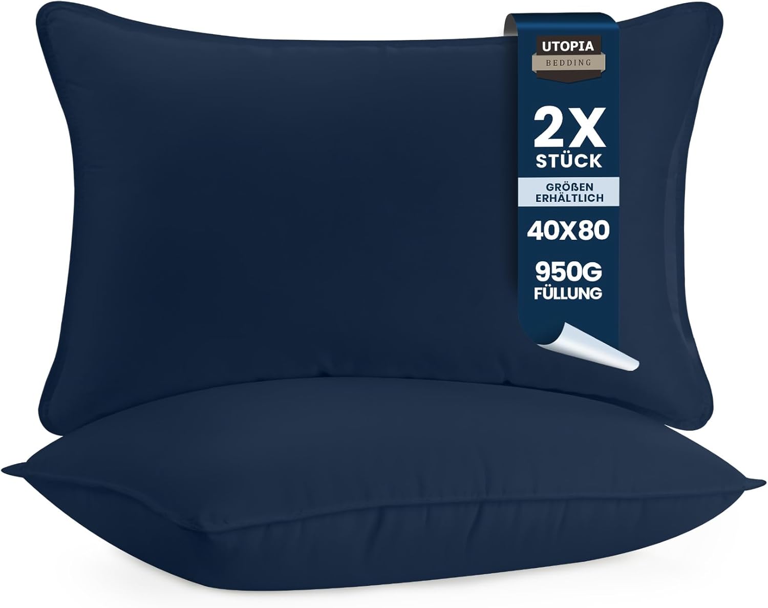 Das Set enthält 2 weiche Kissen aus marineblauem Stoff mit den Maßen 40 x 80 cm. Die Kissen sind vielseitig einsetzbar und bieten angenehmen Komfort für alle Schlafpositionen, ideal für Schlafzimmer oder als Kuschelkissen auf dem Sofa.
