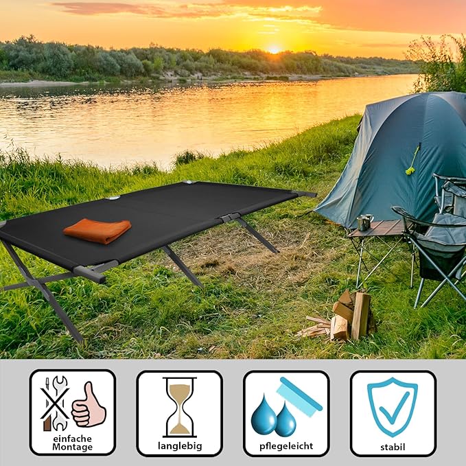 Ideal für drinnen und draußen – ob als Campingbett, Gästebett oder Gartenliege. Bietet hohen Schlafkomfort und lässt sich schnell auf- und abbauen.