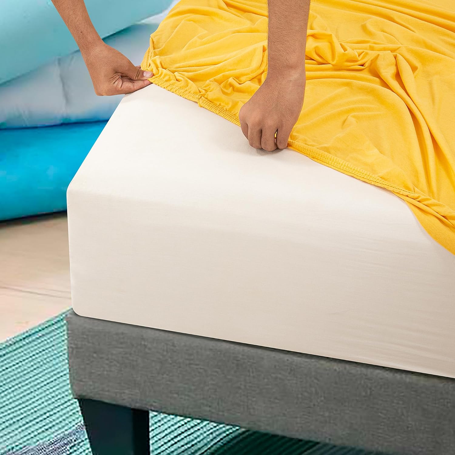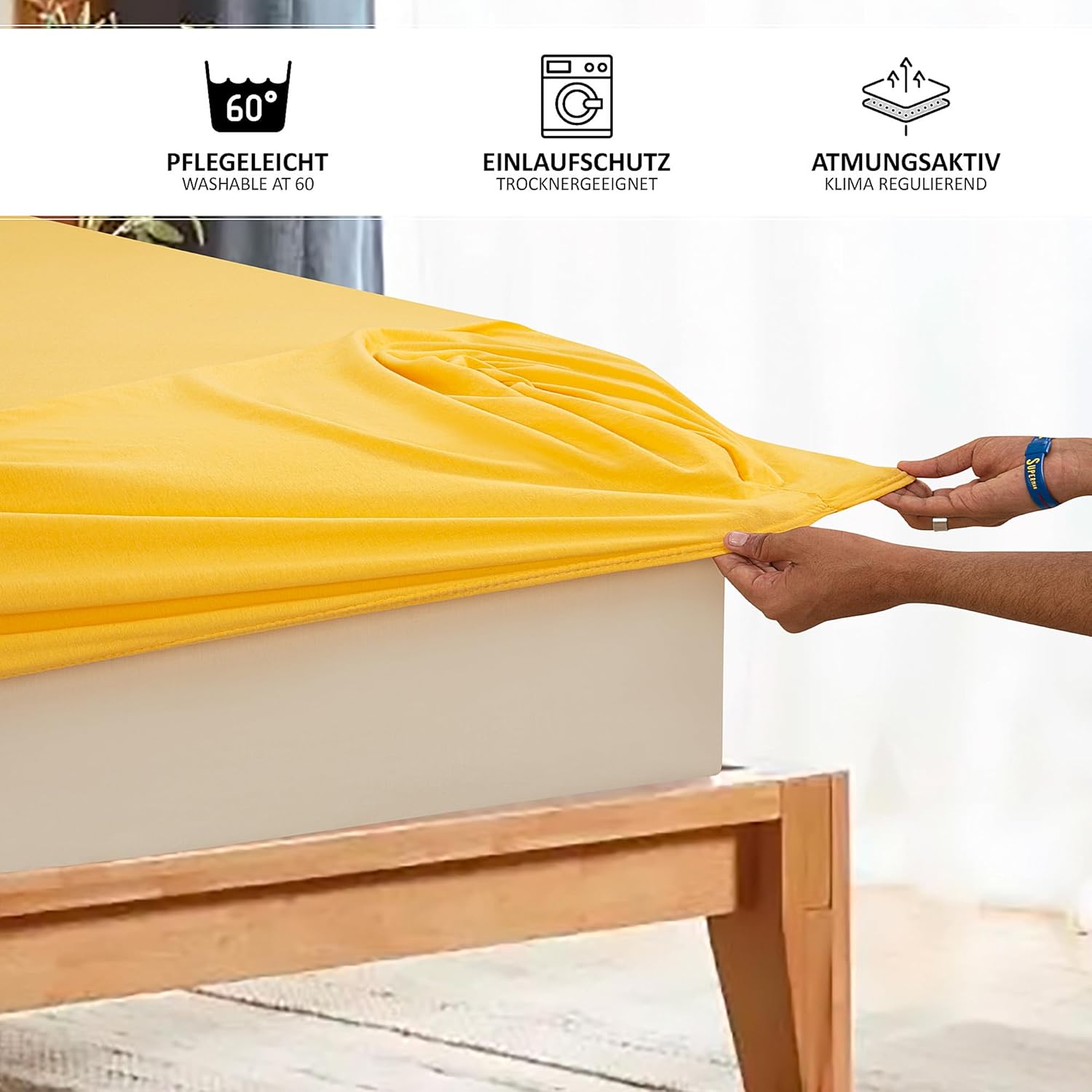 Passend für Matratzen bis 20 cm Höhe, erhältlich von 90 x 200 cm bis 200 x 220 cm. Maschinenwaschbar bei 60 °C, trocknergeeignet, ohne Bleichen oder chemische Reinigung – so bleibt die Qualität und Farbe lange erhalten.