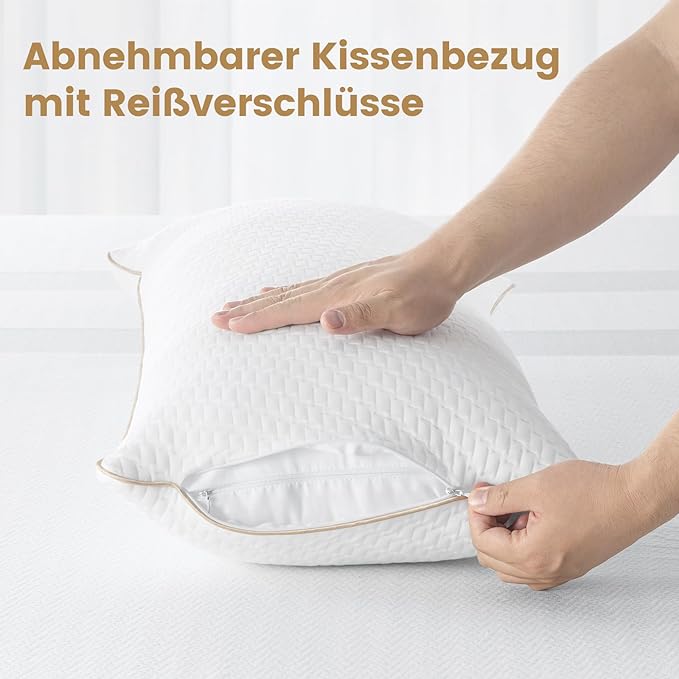 Im Set enthalten sind abnehmbare Bezüge, die sich einfach bei bis zu 30 °C in der Maschine waschen lassen. Dies bietet einen klaren Vorteil gegenüber vielen herkömmlichen Kissen und garantiert dauerhafte Frische und Hygiene.
