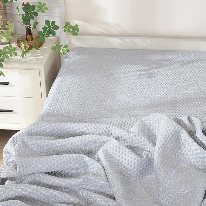 Made from innovative cooling fibers with a Q-Max value of over 0.4 – significantly more effective than conventional fabrics (< 0.15). Pleasantly cools without freezing – ideal in combination with air conditioning for restful nights in the summer.