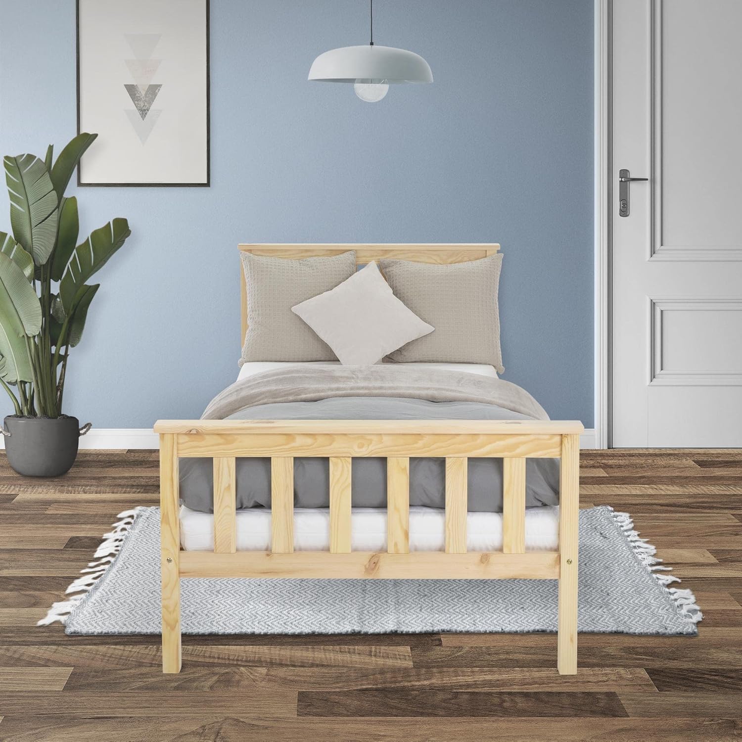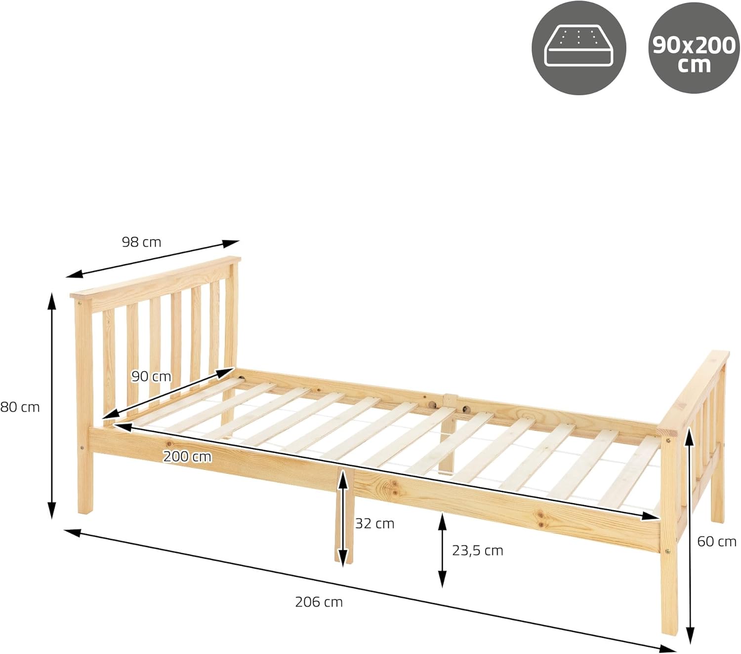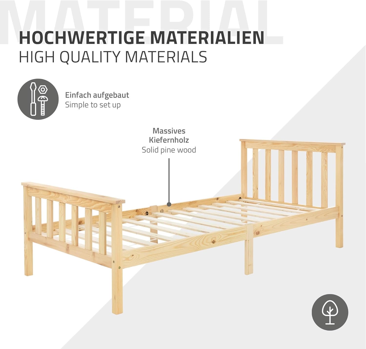 Massivholz Bett 90×200 cm aus Kiefernholz mit Lattenrost – Perfektes Einzelbett für Kinder und Erwachsene