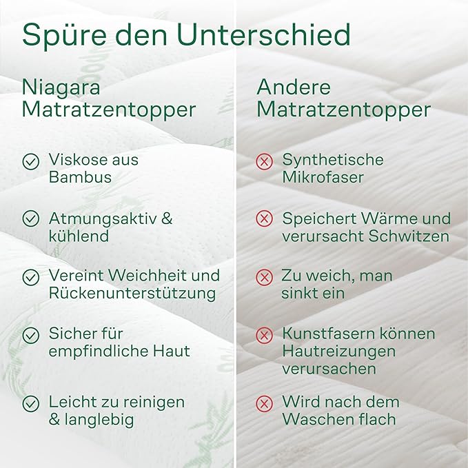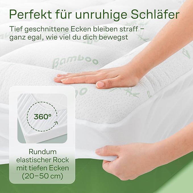Genießen Sie den natürlichen Komfort einer Matratzenauflage aus Bambusviskose und erleben Sie erholsame Nächte mit maximaler Entspannung.