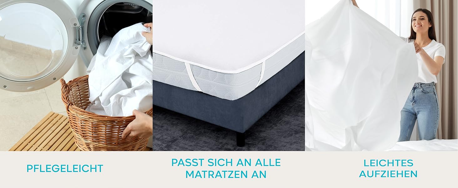 🔹 Wasserdichter Matratzenschoner 180×200 cm – Optimaler Schutz vor Feuchtigkeit & FlĂĽssigkeiten: Dieser Matratzenschoner ist zu 100 % wasserdicht und schĂĽtzt Ihre Matratze effektiv vor Feuchtigkeit, SchweiĂź, Urin und anderen FlĂĽssigkeiten. Ideal fĂĽr Haushalte mit Kindern, Haustieren oder fĂĽr Menschen, die zusätzliche Hygiene und Schutz benötigen. GenieĂźen Sie eine lange Lebensdauer Ihrer Matratze und sparen Sie langfristig Geld durch zuverlässigen Schutz.